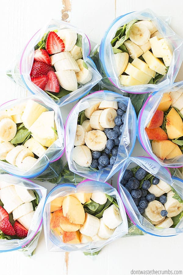 • Frozen smoothie packets – Everything you need for a smoothie is cut up, in a bag (I highly recommend using reusable bags), and ready to be blended in the morning.