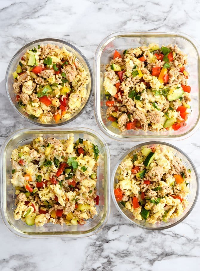 Many of these recipes are low carb or can be made vegetarian or vegan, and they’re all easy to make in advance. You can freeze lots of these breakfast meal prep ideas, too. This means you can make lots, and then not worry about breakfast for several days.