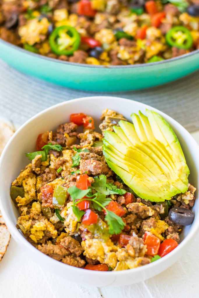 • Taco breakfast scramble – I like mine extra spicy, and I love topping them with lots of freshly chopped avocados.