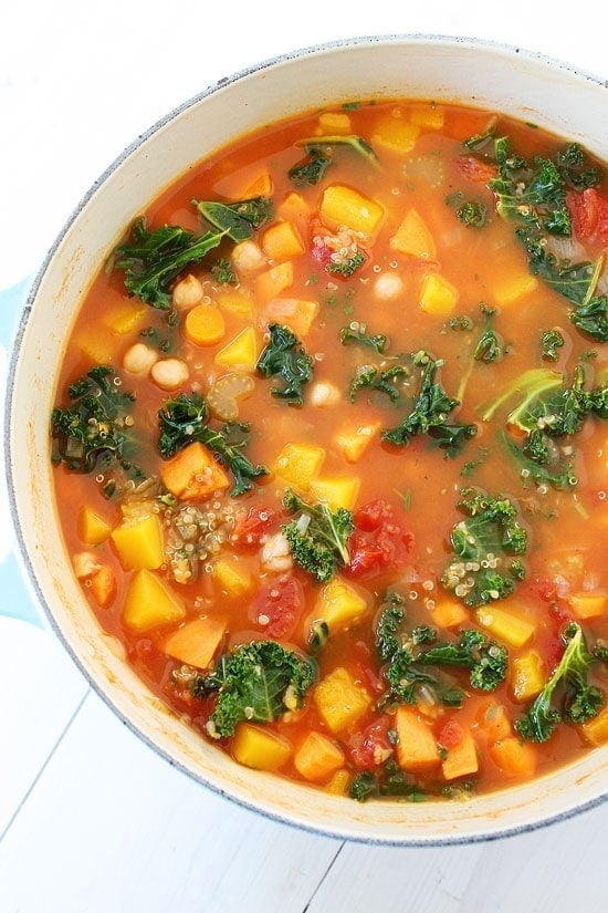 And, you have to try the fall vegetable quinoa soup. It has sweet potatoes, butternut squash, kale, and chickpeas. I highly recommend making a double batch of this one, so you have plenty of leftovers.