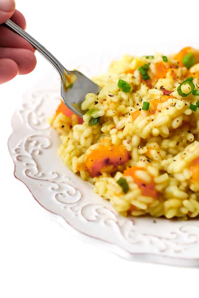 One of my new favorites is the vegan butternut squash risotto. It’s gluten-free and vegan, but it tastes so rich and creamy. This recipe would be great served with roasted vegetables.