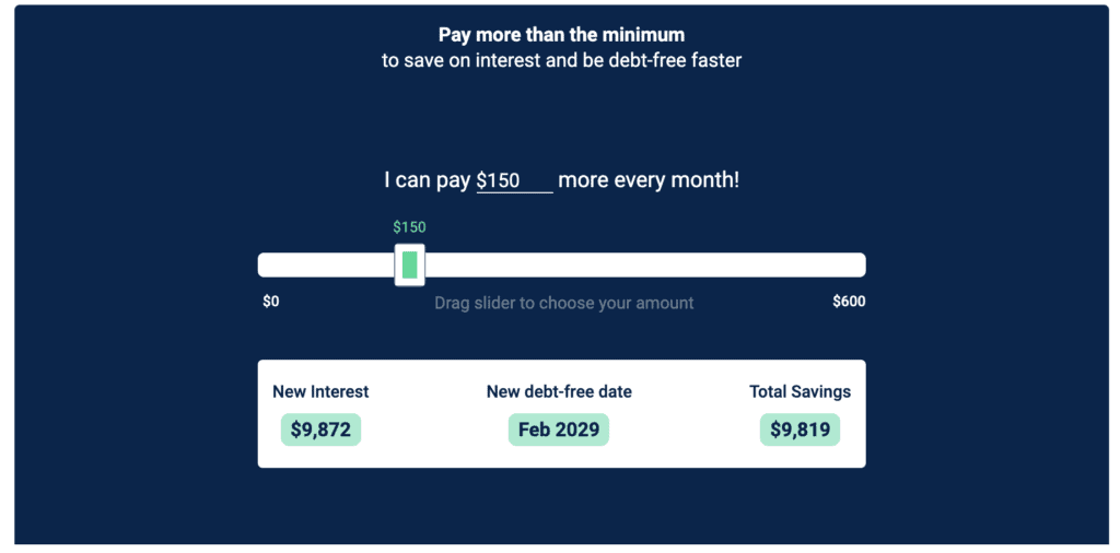 3. The tool will then show you how extra payments may help you become debt free faster.