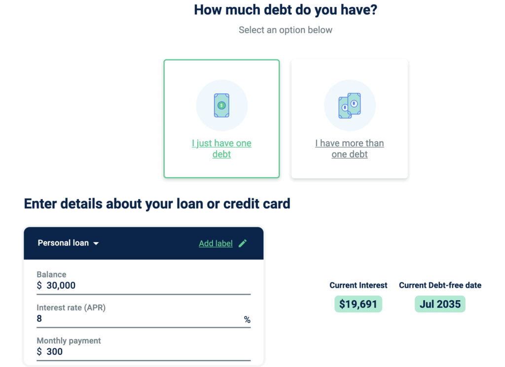 1. Type in your debt information, such as how you owe, your interest rate, and your monthly payment amount.