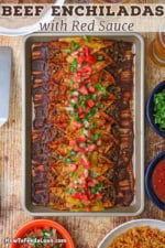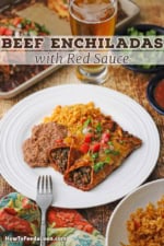 Beef Enchiladas with Red Sauce are so flavorful and satisfying that they will rival your favorite Tex-Mex restaurant, bringing the authentic taste of Mexico right to your kitchen. Served alongside traditional refried beans and homemade Mexican rice, this dish creates a complete and delicious meal that will impress family and friends.