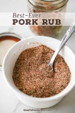 Best Pork Rub enhances the flavor of your favorite pork dish. Including Italian-style pork chops, juicy pork tenderloin, classic pulled pork, and even smoked pork brisket. The rub doesn’t outshine the pork meat but complements it. Perfect for ribs, too! Whip up a batch (or two) and keep it in a sealed jar for months!