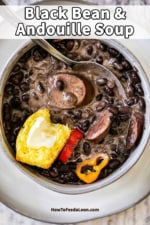 Soak the beans overnight and then the soup comes together very quickly the next day. Any kind of smoked sausage will work, but we really love andouille sausage in this soup. Be sure to make some homemade cornbread for the perfect comfort meal!