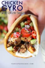 For our chicken gyro, we love going boneless, skinless chicken thighs. The dark meat is flavorful and very tender. But, you can go with chicken breasts, too, you’ll just need to increase the cooking time to reach 165°F internal temperature.