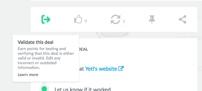 So, to invalidate this deal so that people stop wasting their time, I go back to Dealspotr and go to the section where it says “Validate this deal.”