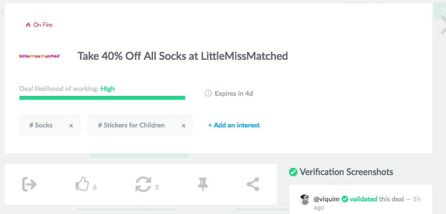 And, what’s nice about Dealspotr is that I can see the “Deal likelihood of working,” the last time it was validated, and the expiration date.