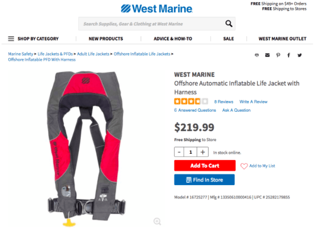 I tried heading to a popular coupon site to find a promo code for my order. But all I saw were a few sales going on for the West Marine site – nothing to do with my husband’s PFD.