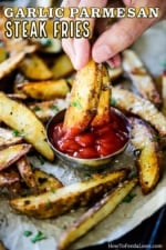 These steak fries are an absolutely amazing side dish to grilled steak or chicken. Also, we love to serve them at a gathering of friends as an impromptu appetizer.