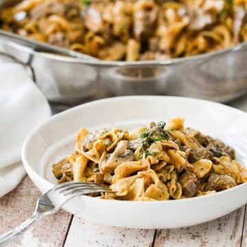 We like to say: “This isn’t your mama’s beef stroganoff!” Sorry, mama…no offense, but this version is nothing short of spectacular. And it comes together in about 30 minutes!