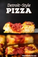 Use a Deep Dish Pan: This pizza is known for its thick, crispy crust and deep dish pan. Use a square or rectangular pan that is at least 2 inches deep to achieve the signature crust. Take note in the recipe (and in the Notes) of how much dough and cheese you’ll need to use for each sized pan.