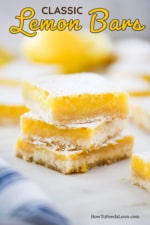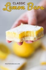 You may be wondering “Can you freeze lemon bars?” Absolutely! They freeze beautifully for up to 1 month. Let them completely thaw before serving.