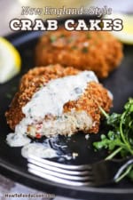 You may be wondering what makes a crab cake New England-style. They are crispy on the outside and very creamy and crabby on the interior. They are easy to prepare and truly spectacular. Even non-seafood lovers flip for these cakes. The homemade tartar sauce puts them over the top!