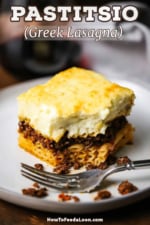 Allow the Pastitsio to Rest Before Serving – Let the dish rest for 20 to 30 minutes after baking to allow the flavors to meld together and to ensure clean slices when serving. It stays warm for at leas an hour.