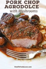 - Plate the pork chops and spoon the agrodolce mushroom sauce over the top.
