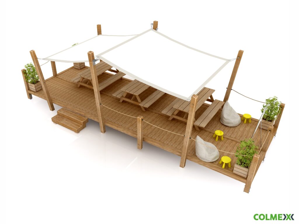 Funkce: Venkovní akátová učebna, kancelář a pódium pro nejlepší nápady a výkony na čerstvém vzduchu v souladu s přírodou. Mentální rozvoj při studiu; zdravé pracovní návyky při práci ve venkovní kanceláři; rozvoj koordinace, síly, pružnosti a lásky k přírodě při józe.