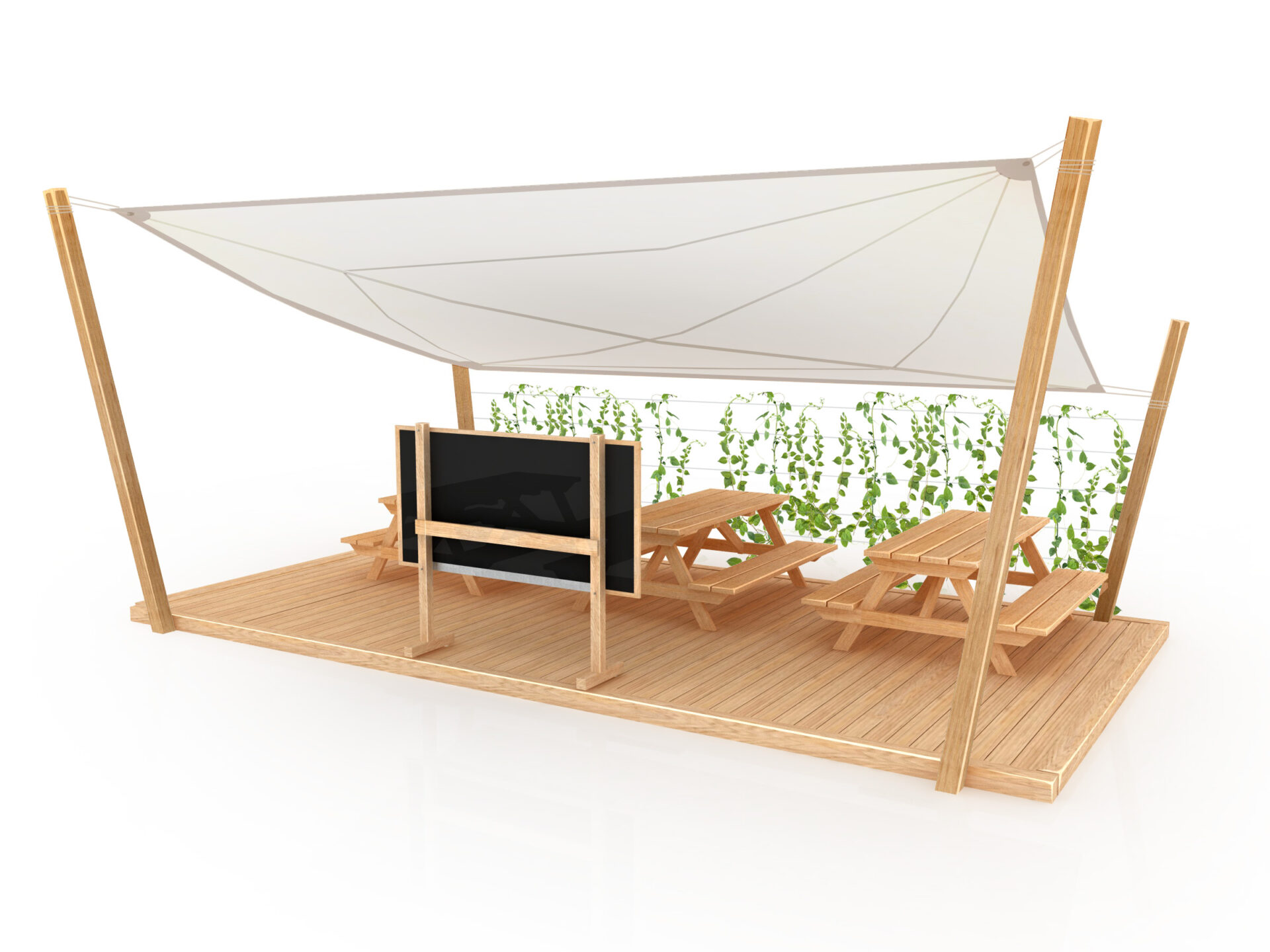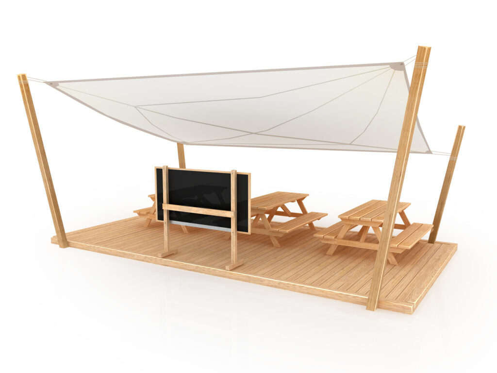 Venkovní kancelář i pódium v jednom najde využití všude tam, kde je potenciál pro zkultivování veřejného prostoru a podporu nejpřirozenějšího prostředí pro pohyb i práci na čerstvém vzduchu. Venkovní akátová učebna přináší prostor pro meeting na čerstvém vzduchu, výuku se svěžími nápady, jógu v kontaktu s přírodou a jakýkoliv další účel, který vás jen napadne.