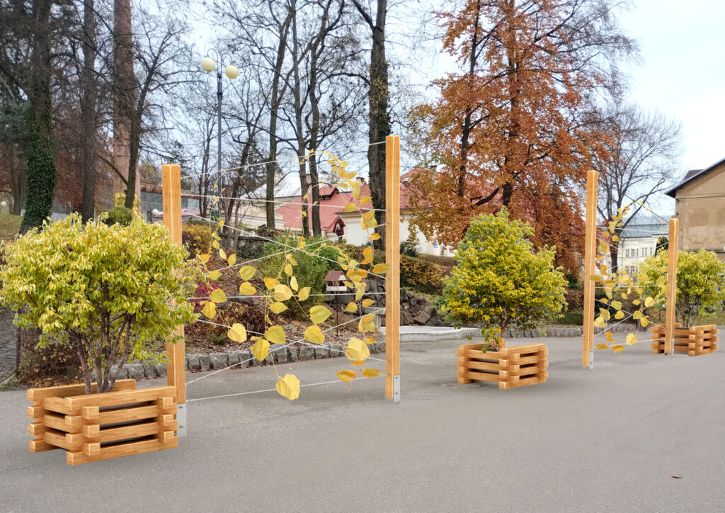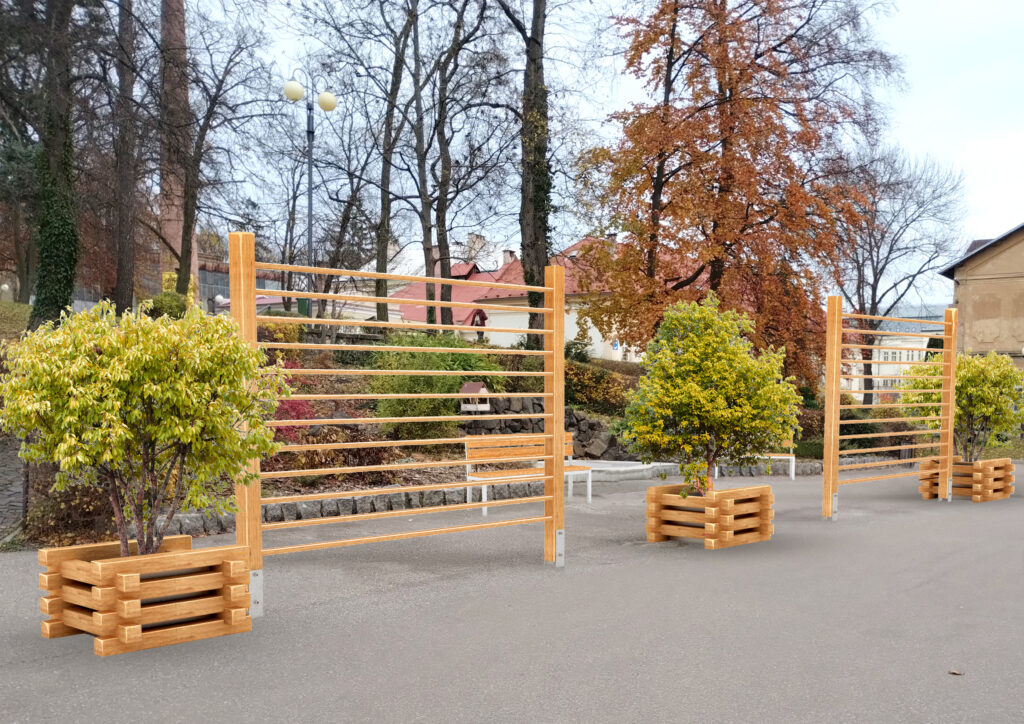 Funkce: Akátový víceúčelové stěny vhodně doplňují řadu venkovních učeben. Vytváří přirozený prostor pro odpočinek v souladu s přírodou.