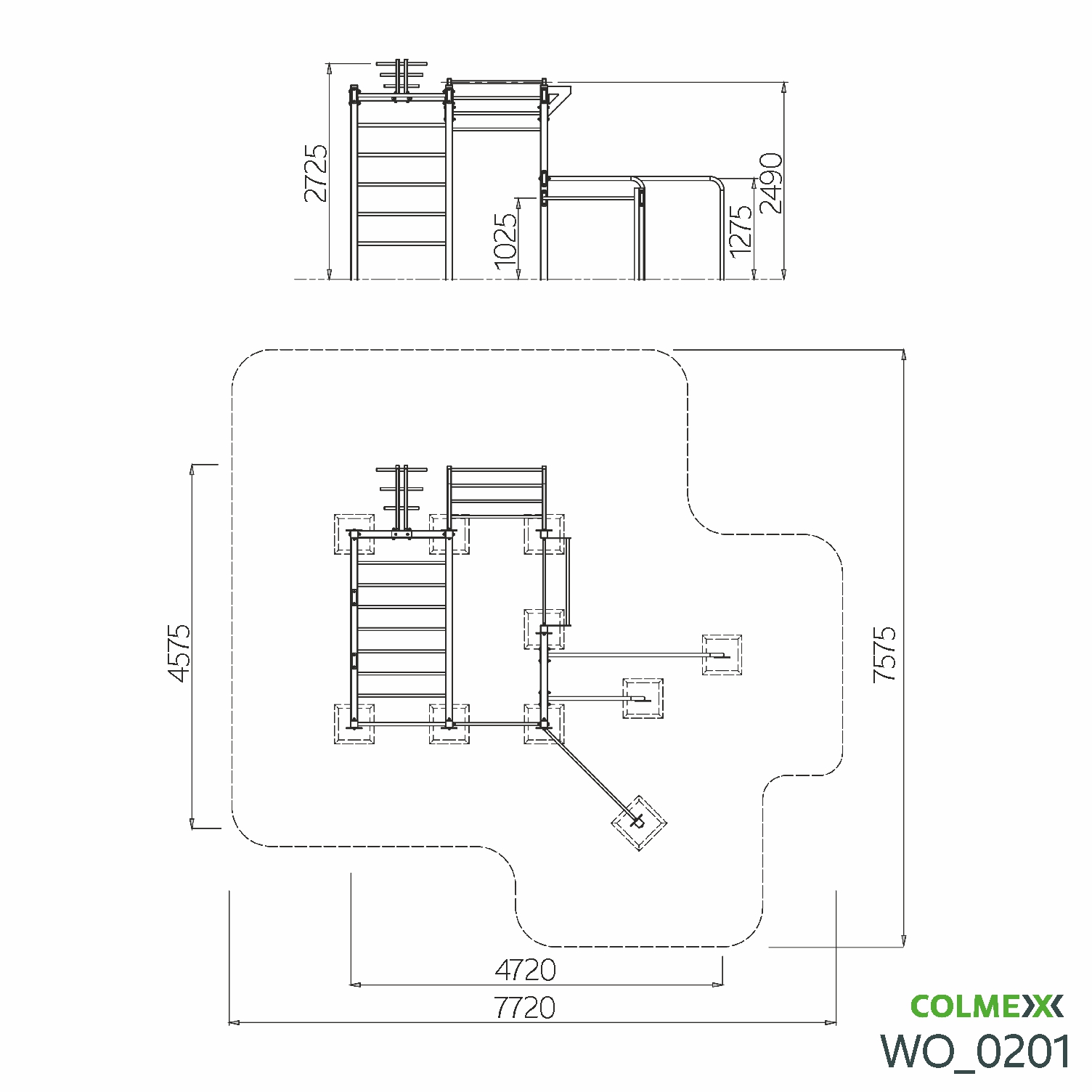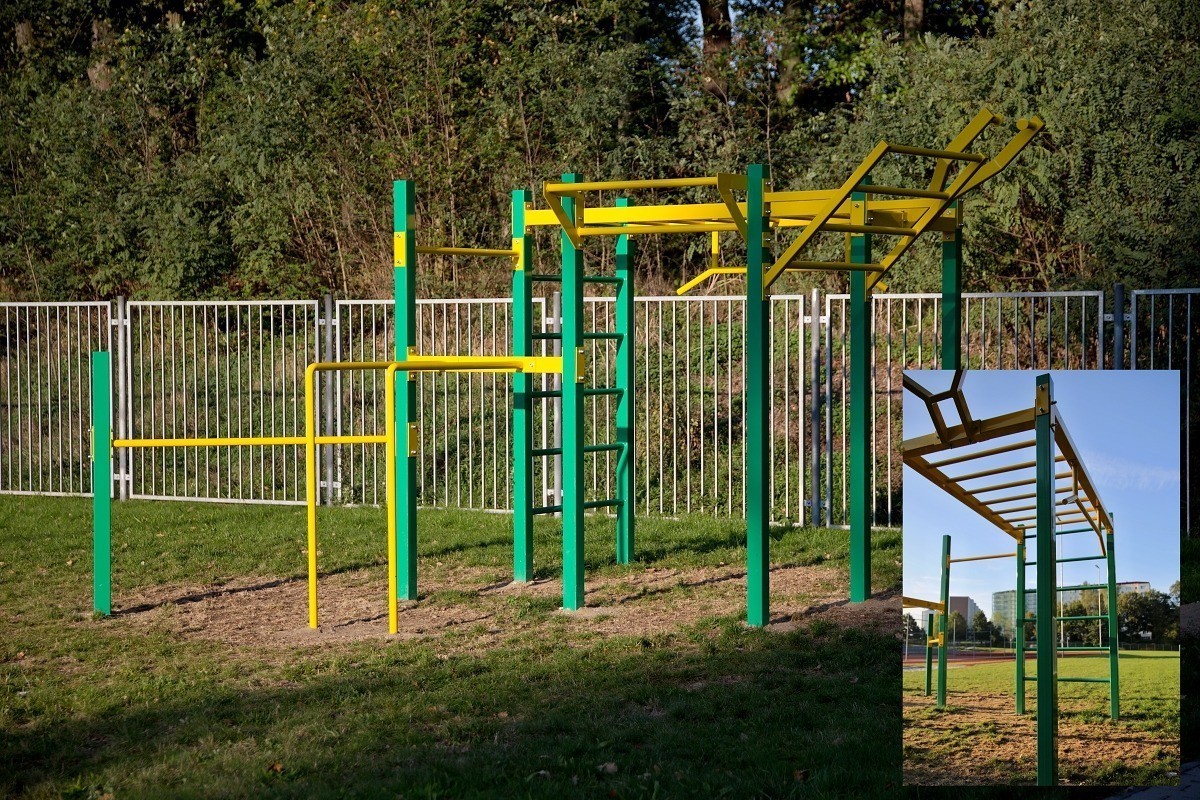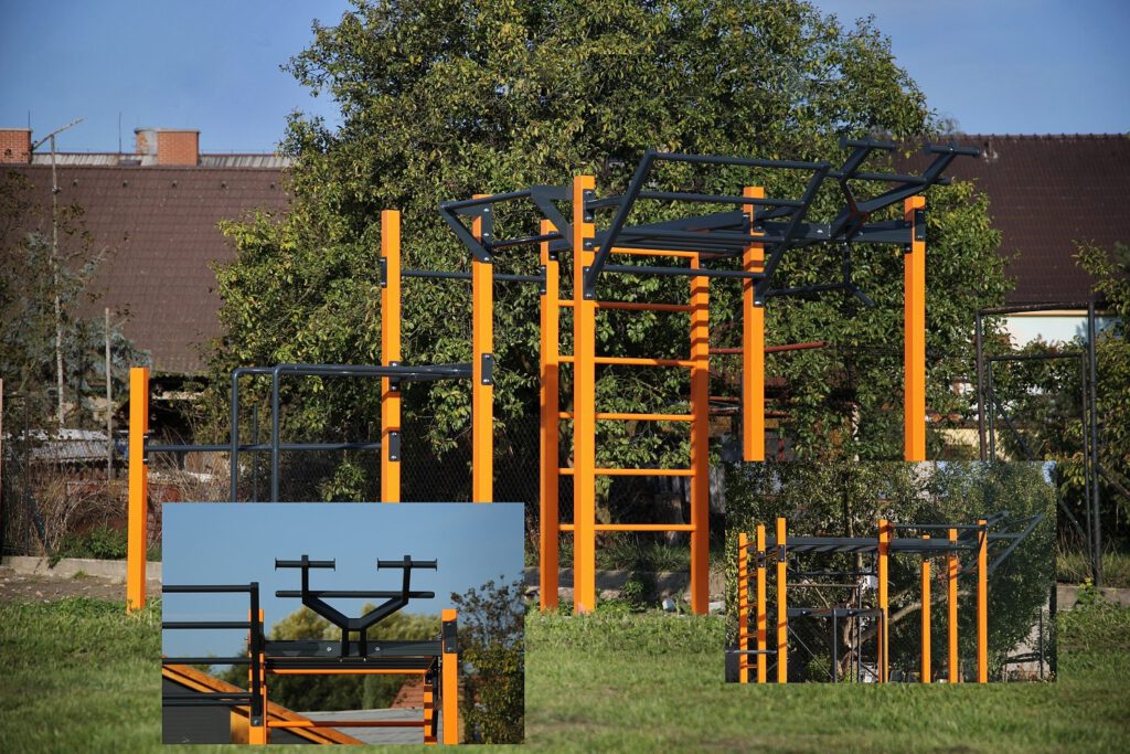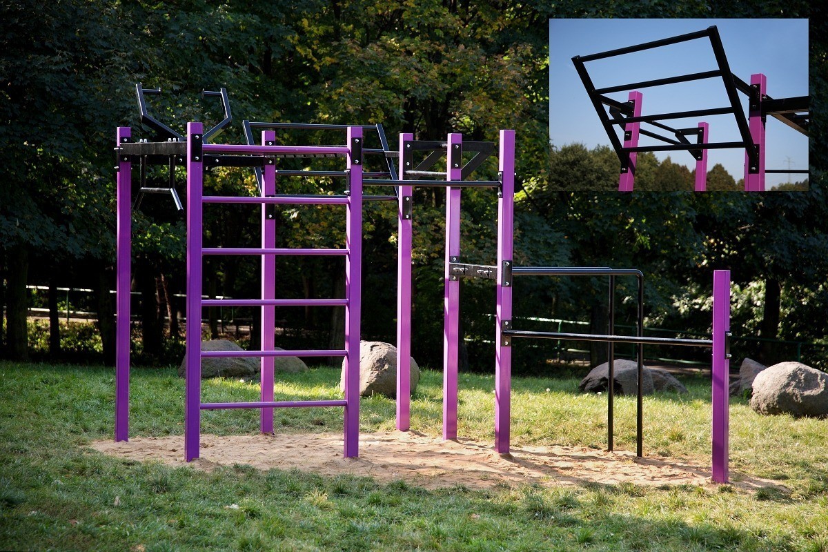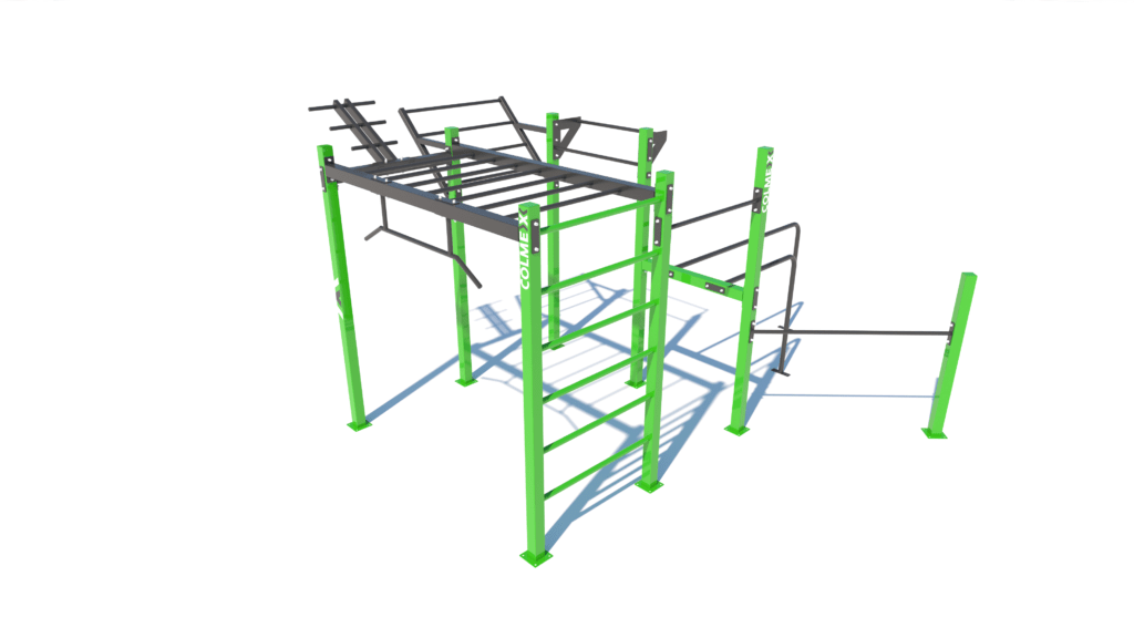Poznámka: Sestava obsahuje následující workoutové segmenty: jednoduchou hrazdu, boční hrazdu, hrazdu podvěšenou, hrazdu střední, vodorovný, svislý a šikmý žebřík, dvojitá bradla a multifunkci (slouží pro zavěšení kruhů, systému TRX aspod.). Ve standardní nabídce máme zeleno-antracitové nebo antracitovo-zelené provedení. Máte možnost objednání barvy i dle vlastní specifikace.