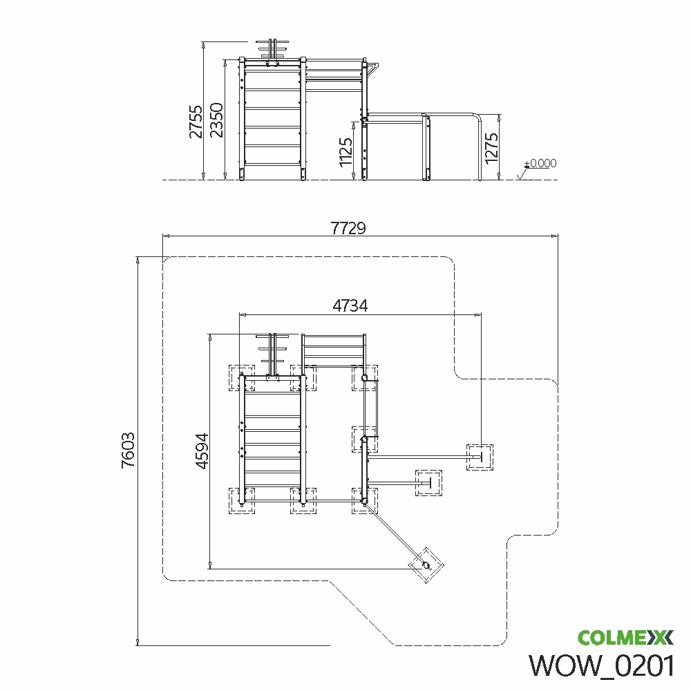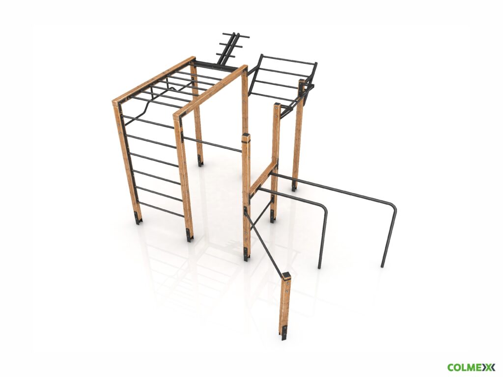 Poznámka: Sestava obsahuje následující workoutové segmenty: jednoduchou hrazdu, boční hrazdu, hrazdu podvěšenou, hrazdu střední, vodorovný, svislý a šikmý žebřík, dvojitá bradla a multifunkci (slouží pro zavěšení kruhů, systému TRX aspod.). Ve standardní nabídce máme zeleno-antracitové nebo antracitovo-zelené provedení. Máte možnost objednání barvy i dle vlastní specifikace.