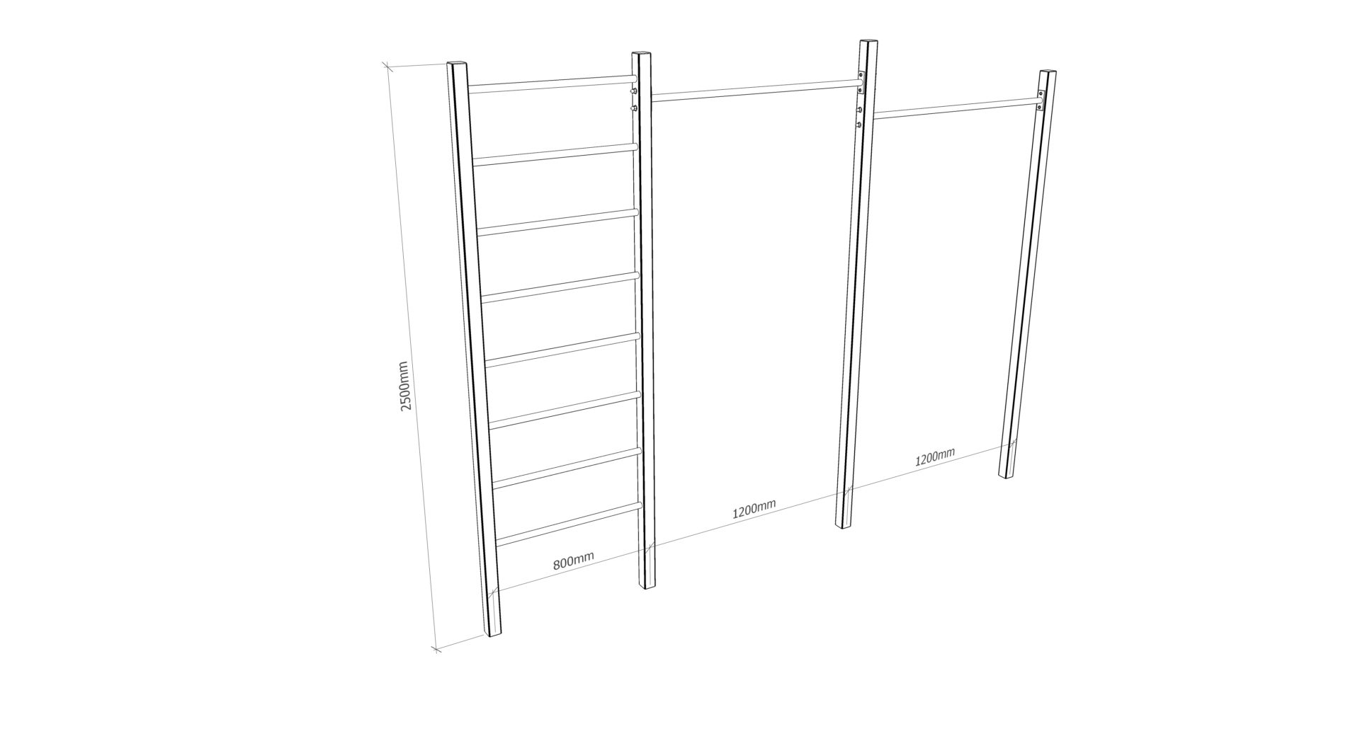 Modul se skládá ze žebřin a dvou cvičících hrazd různých výšek.