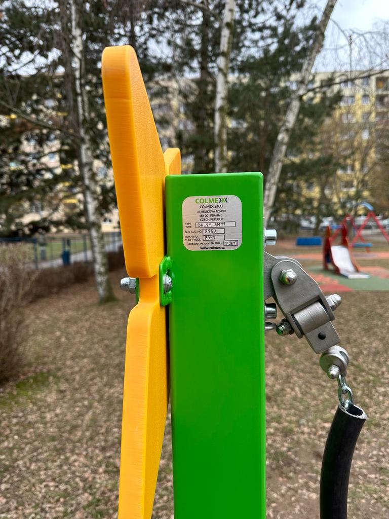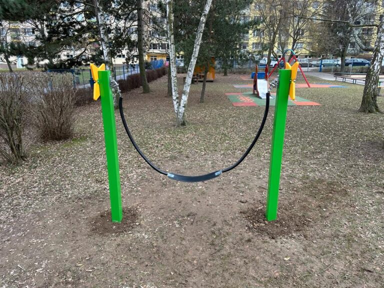 A-typová dětská houpačka vyrobena na míru prostoru i účelu do mateřské školky Madolinka na Praze 4.