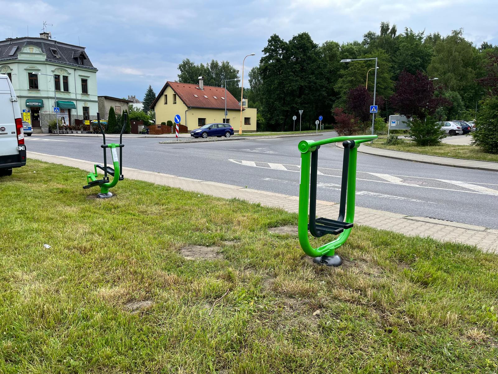 Krásné venkovní fitness stroje umístěné ve středu města.