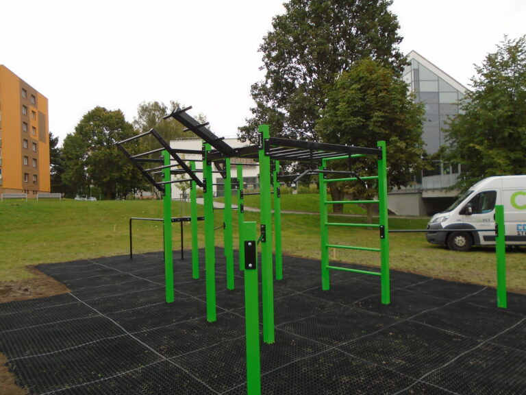 V Novém Městě na Moravě jsme vybudovali venkovní fitpark, který se skládá z třech venkovních fitness strojích a workoutového hřiště Florida.