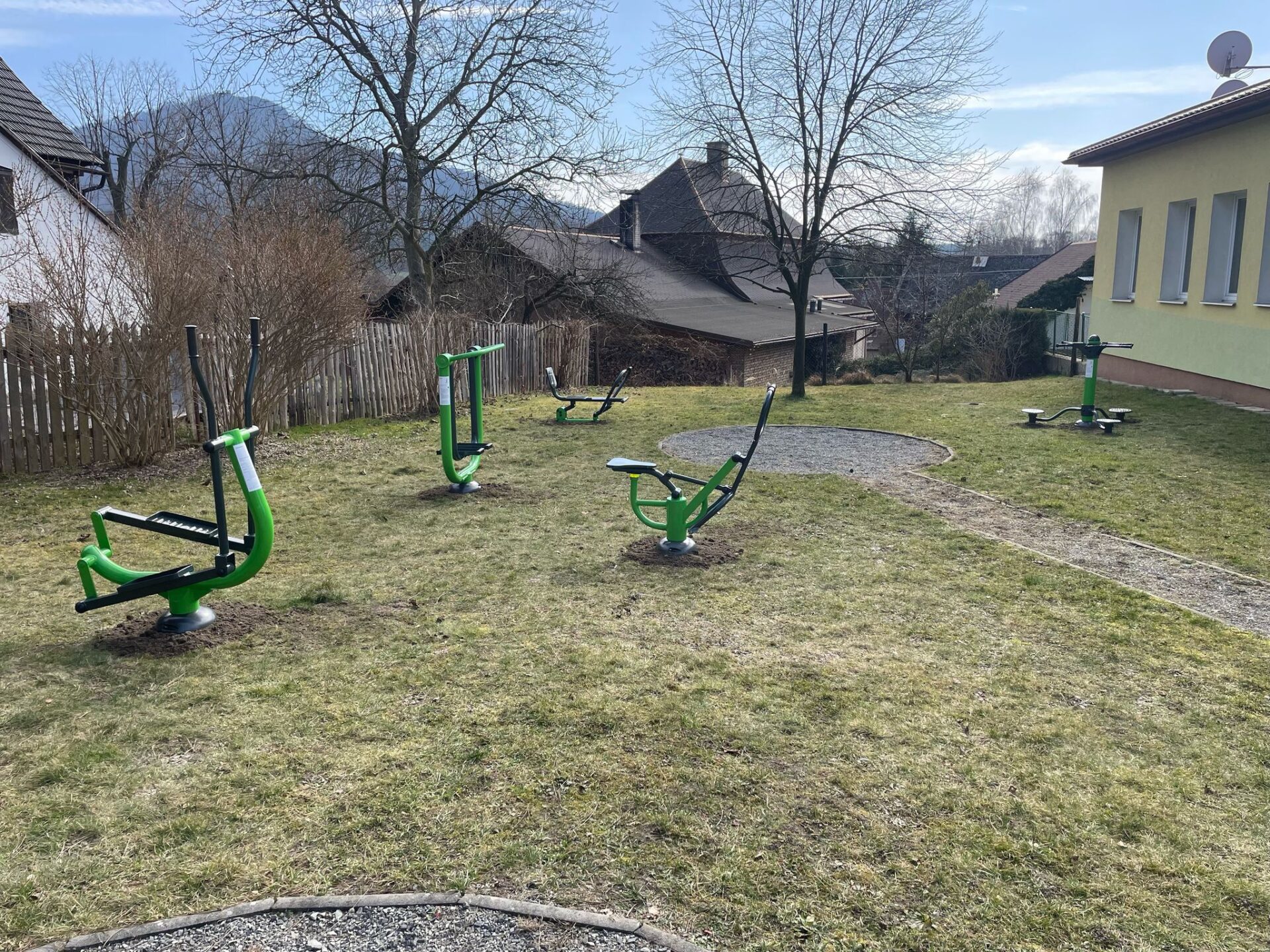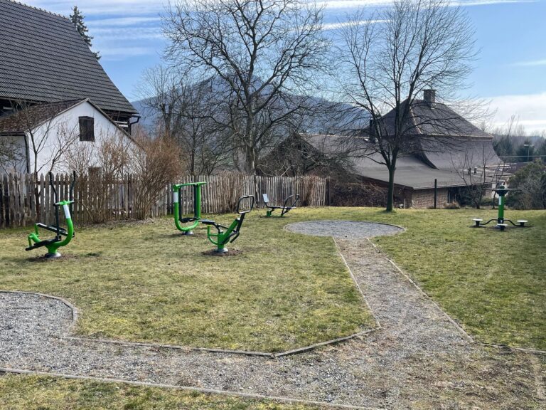 V obci Noviny pod Ralskem si můžete dopřát trénink celého těla na venkovních fitness strojích určených pro posilování horních i dolních končetin, k procvičování pasu a zlepšování koordinace těla.
