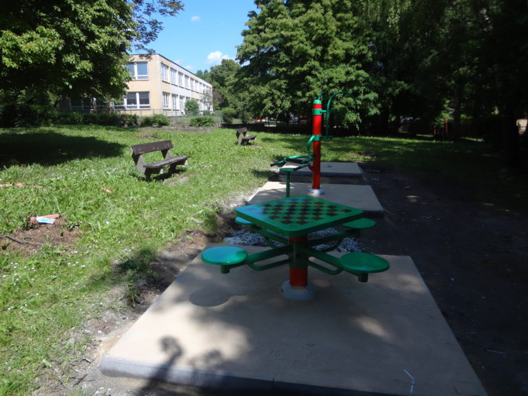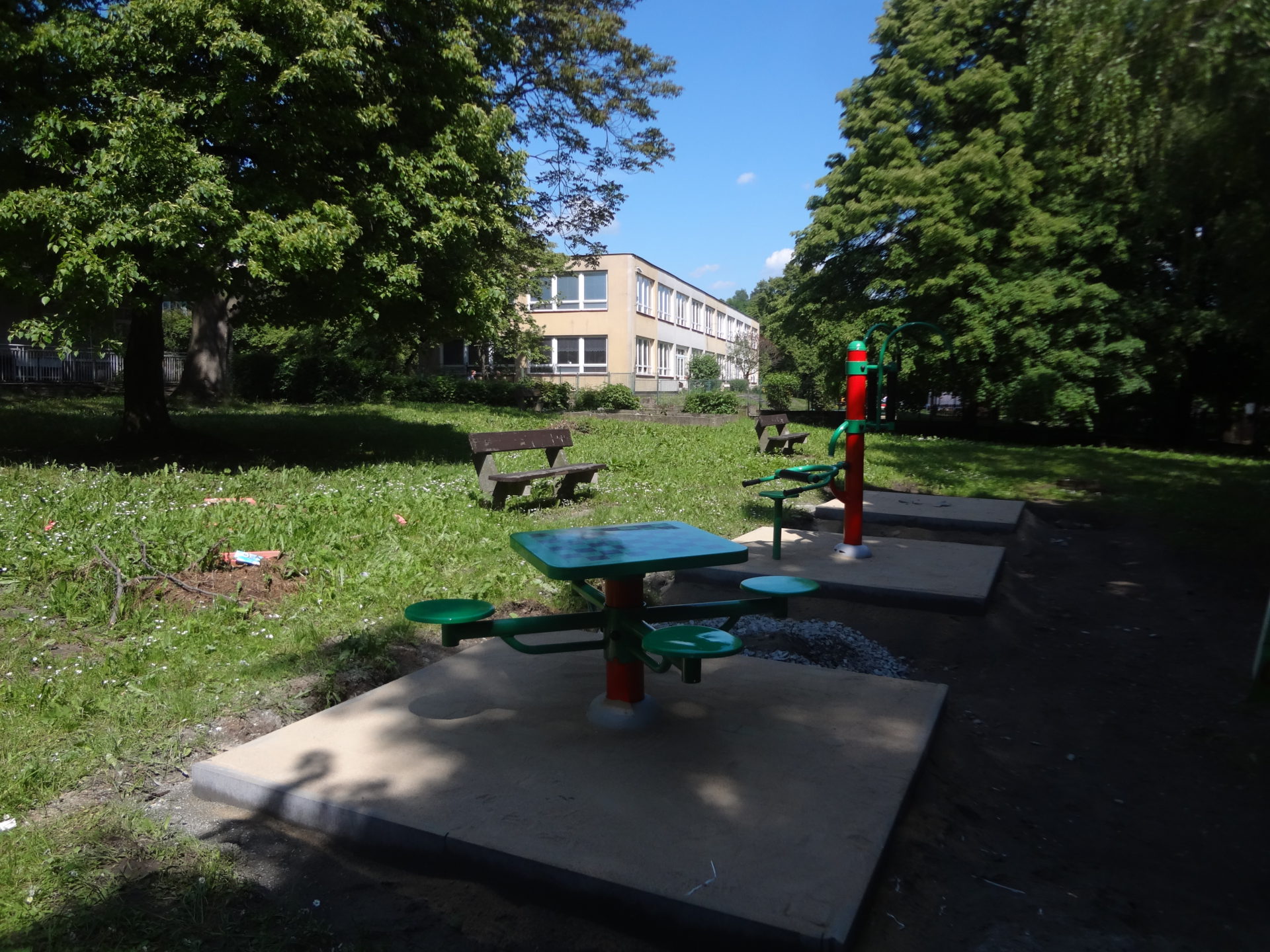 Venkovní posilovna v Ústí nad Labem je umístěna v příjemném prostředí obklopeném zelení.