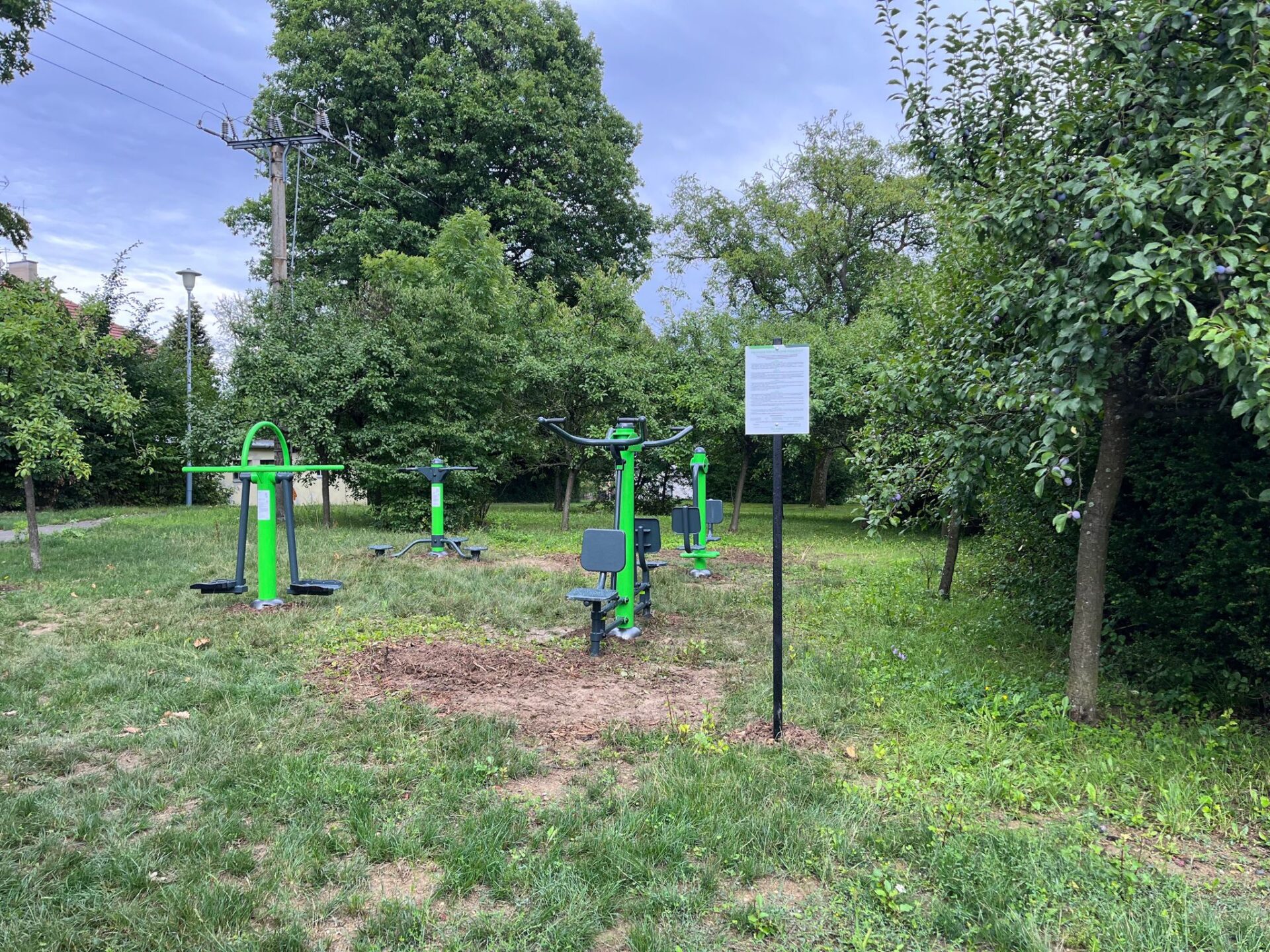 Zacvičit si můžete na čtyřech venkovních fitness strojů.