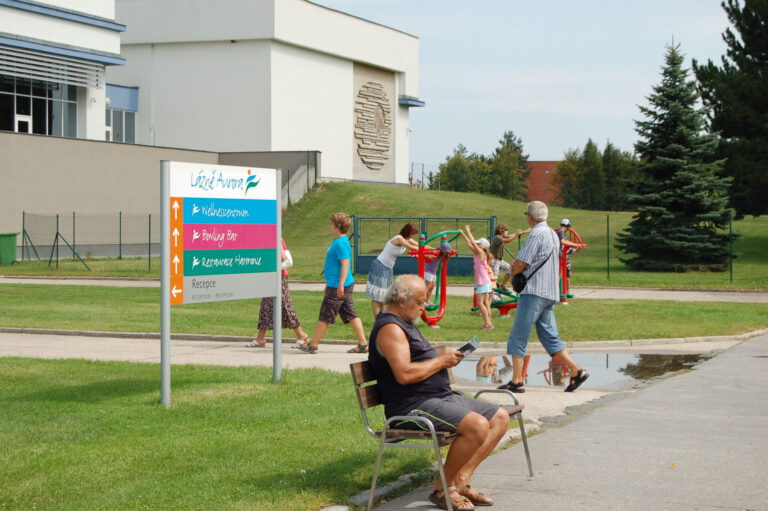 Lázeňský komplex Aurora, jehož cílem bylo rozšíření nabídky venkovních pohybových aktivit klientů lázní, se nachází na západním okraji jihočeského města Třeboně v klidném prostředí rozsáhlého parku na břehu rybníka Svět.