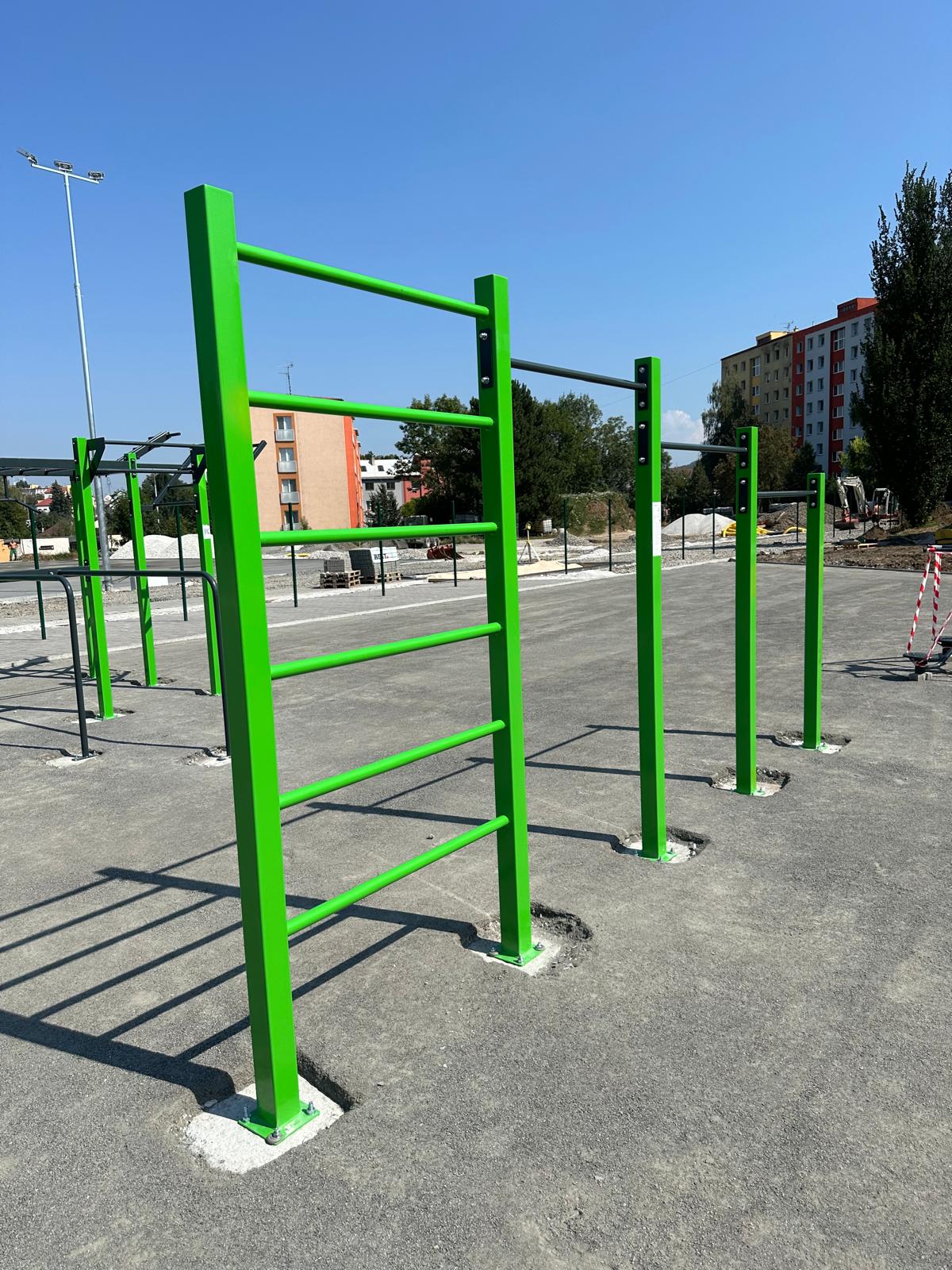 U Základní školy Komenského v Novém Jičíně vyrostlo sportoviště vybavené street workoutovou sestavou pro trénink s vlastní váhou těla, dále pak bradly, žebřinami a hrazdami, sedy-lehy a venkovními fitness stroji pro procvičování pasu.