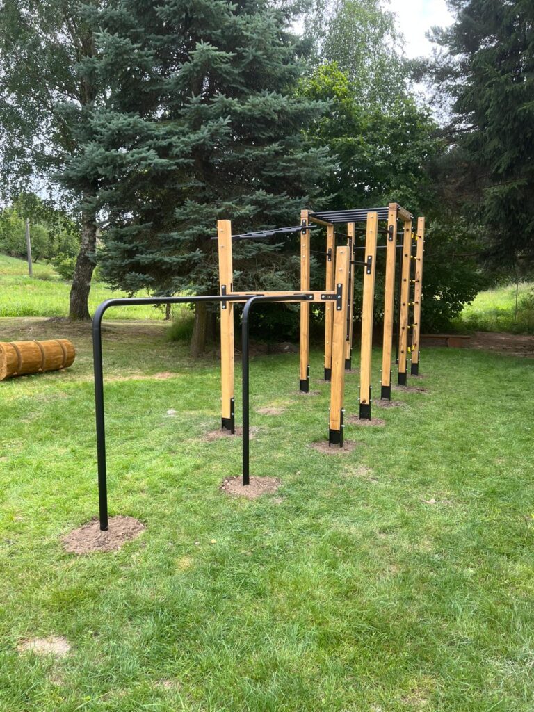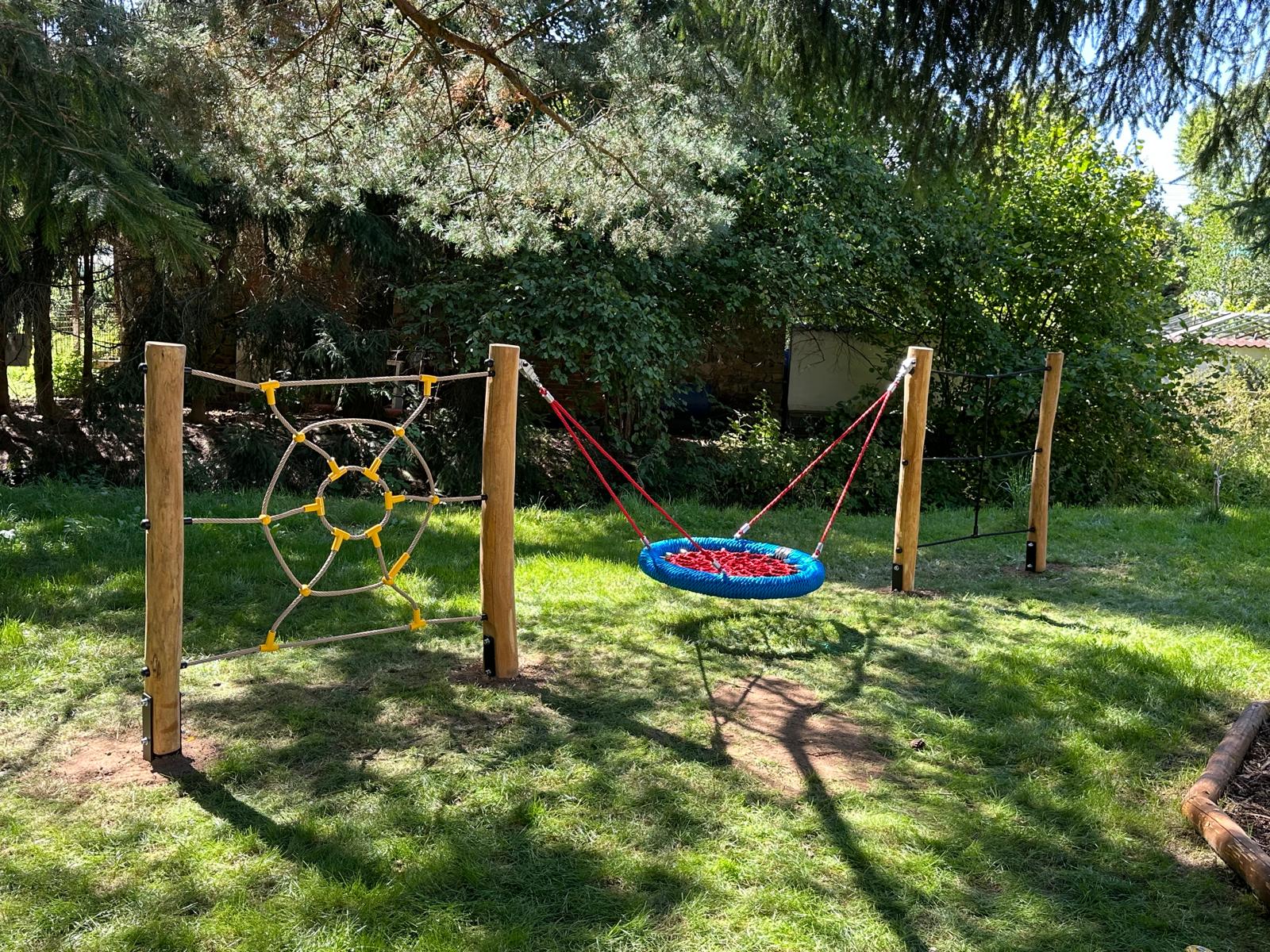 Akátová houpačka s hnízdem a sítěmi pro zvyšování koordinace a síly pro děti od tří let je umístěna spolu s akátovým street workoutem ve městě Bystřice na Benešovsku na rozcestí u Záhořanského potoka. Zvoleným materiálem byl akát, díky kterému působí volnočasový areál jako klidné místo a je citlivě zasazen do okolní krajiny.
