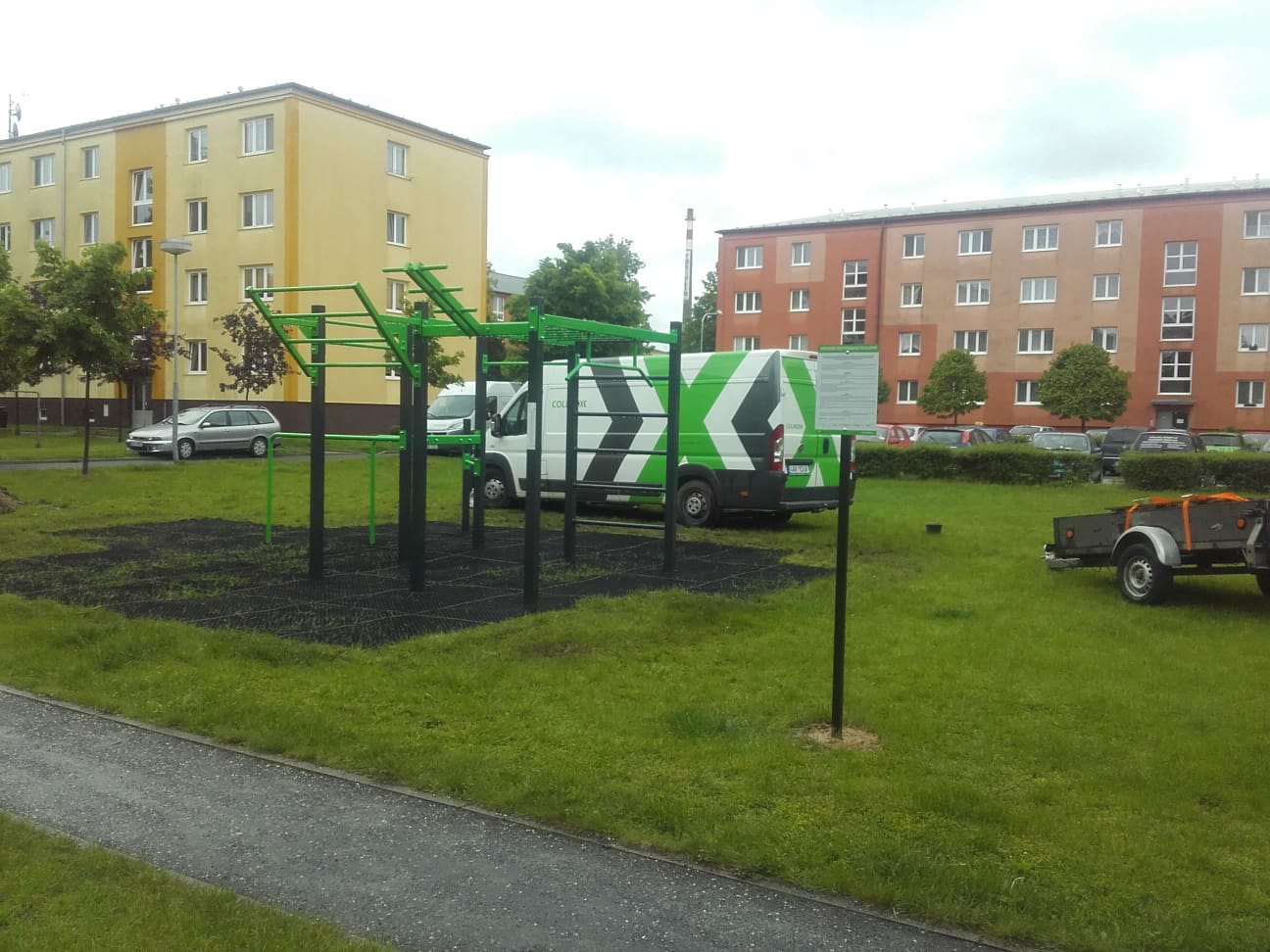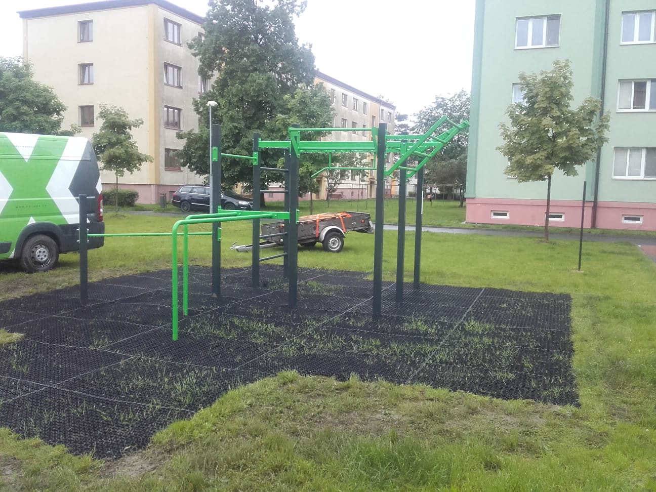 Workoutové hřiště v Hulíně se sestavou, která perfektně snoubí všechny prvky workoutového cvičení.