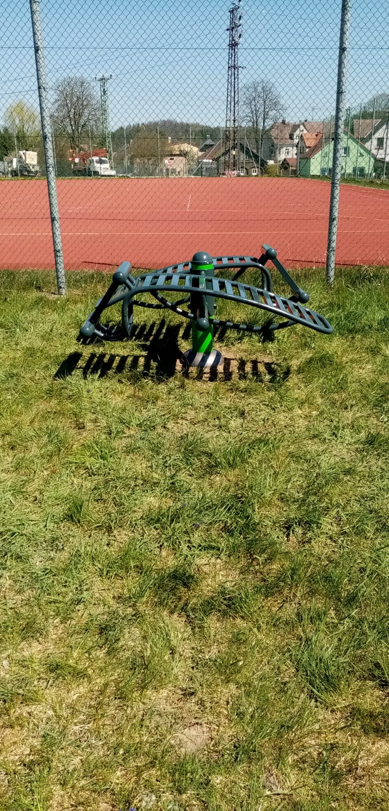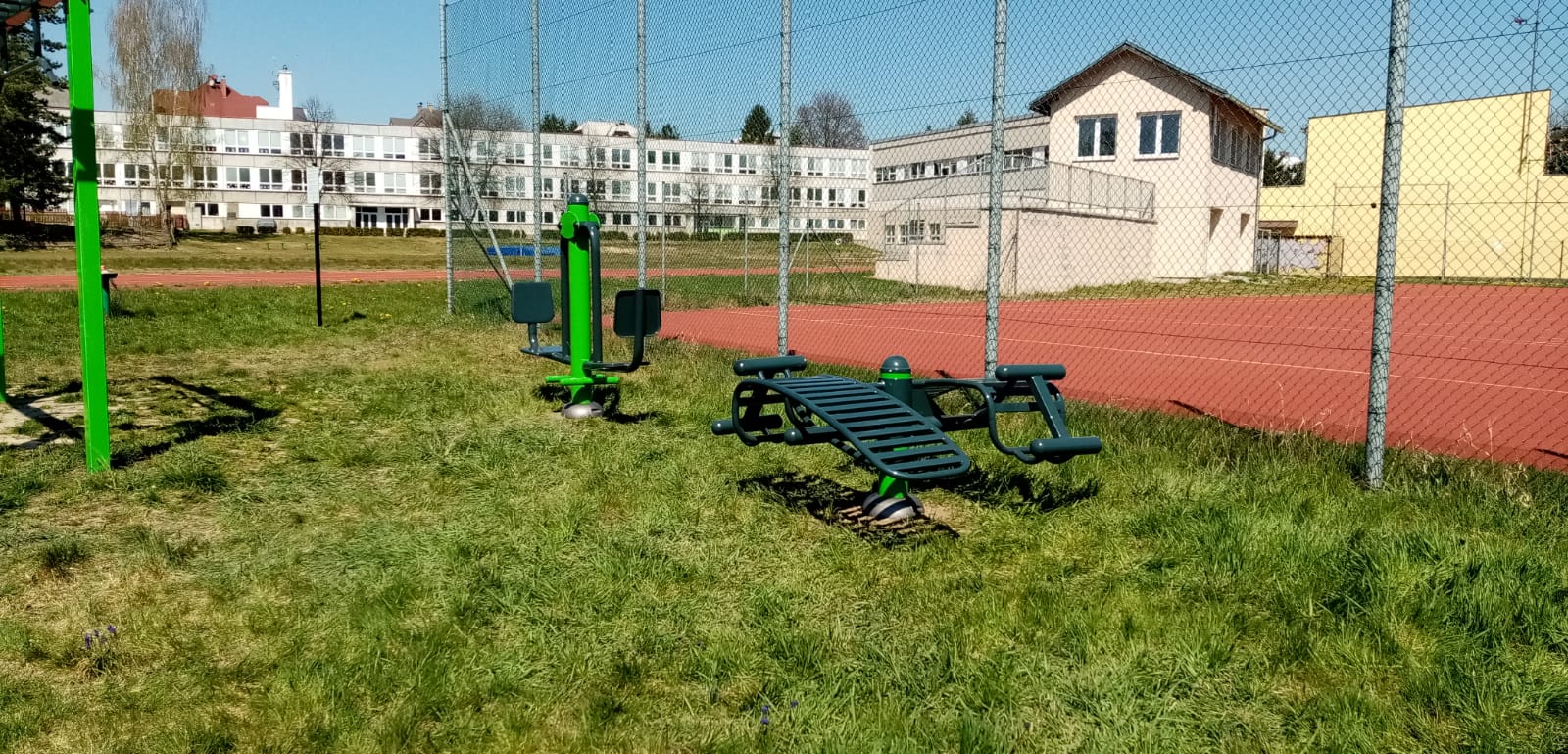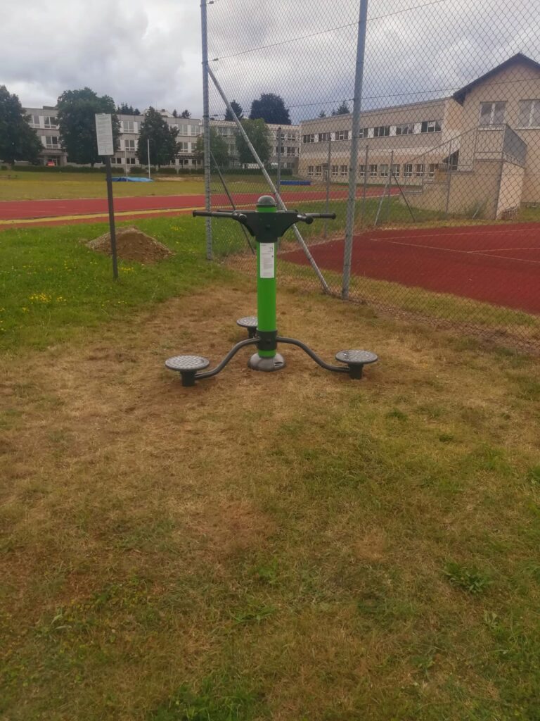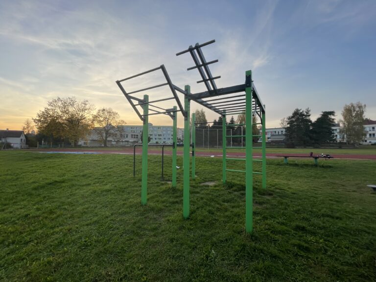 Jak v roce 2020, tak i 2022 jsme rozšiřovali hřiště o další venkovní fitness stroje. Poslední rozšíření proběhlo na jaře roku 2025 a přibyl veslovací stroj.