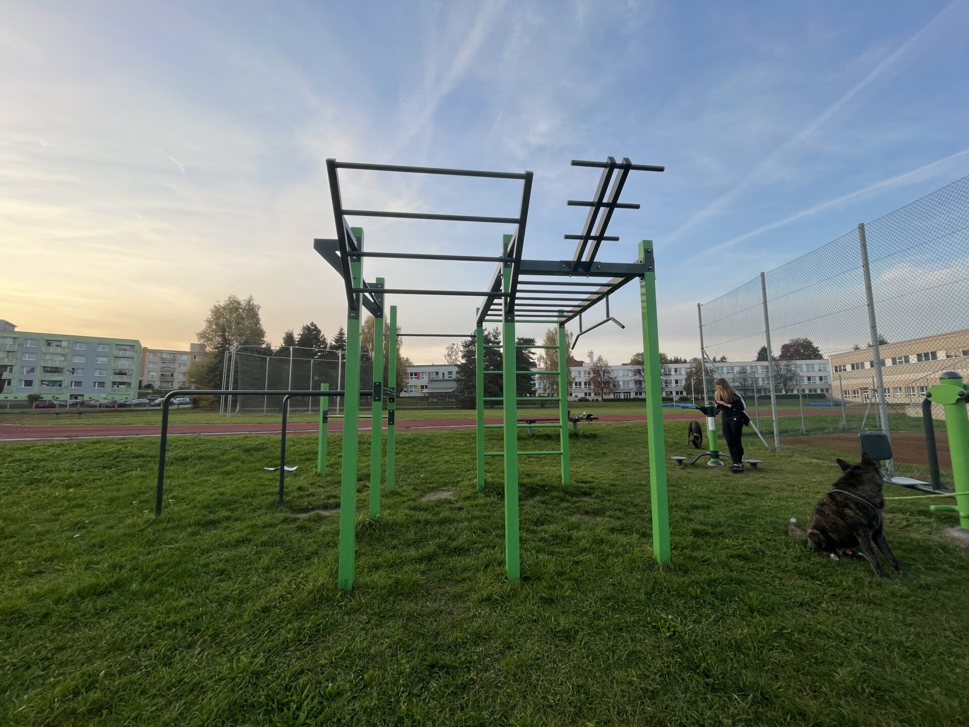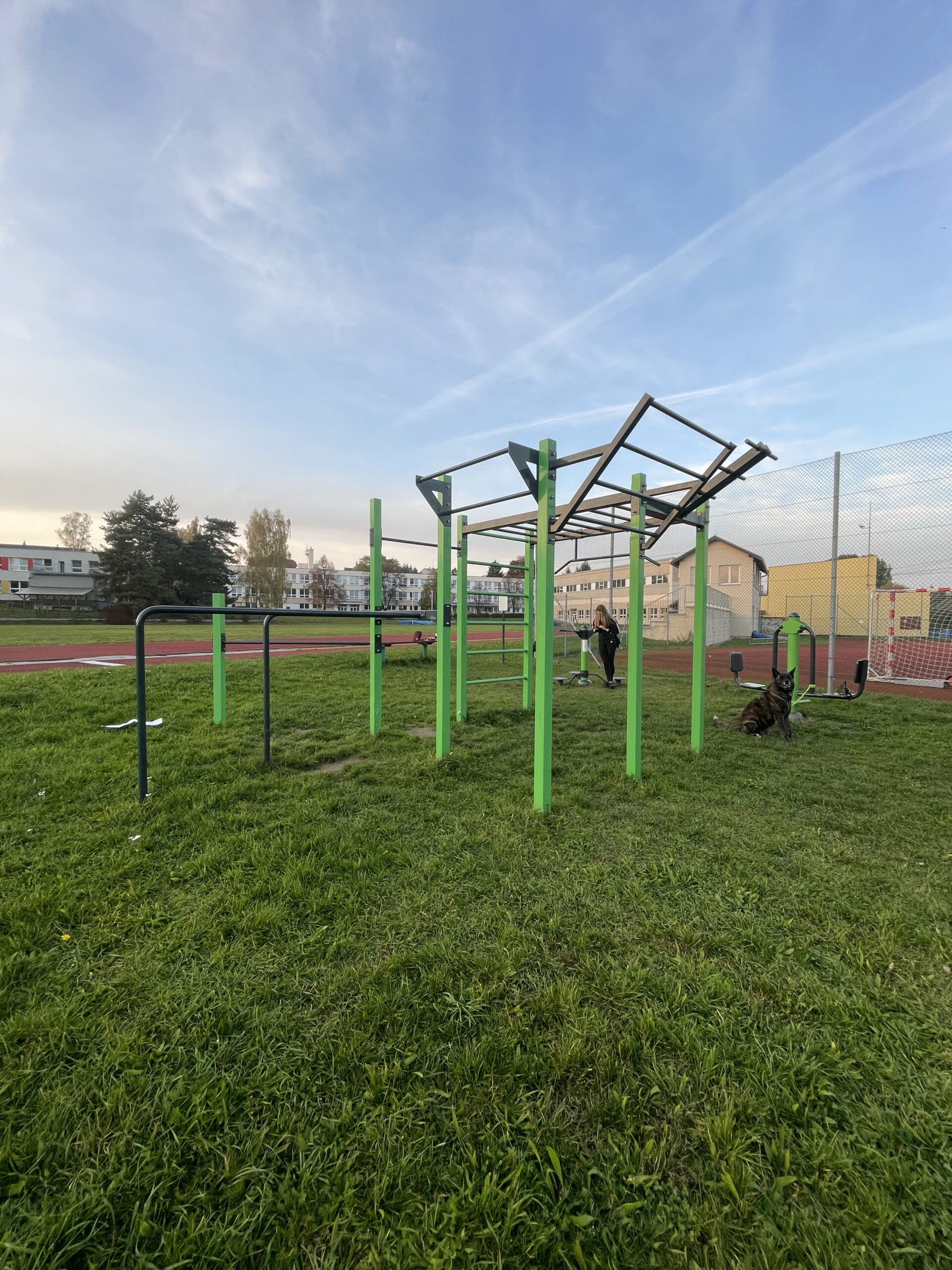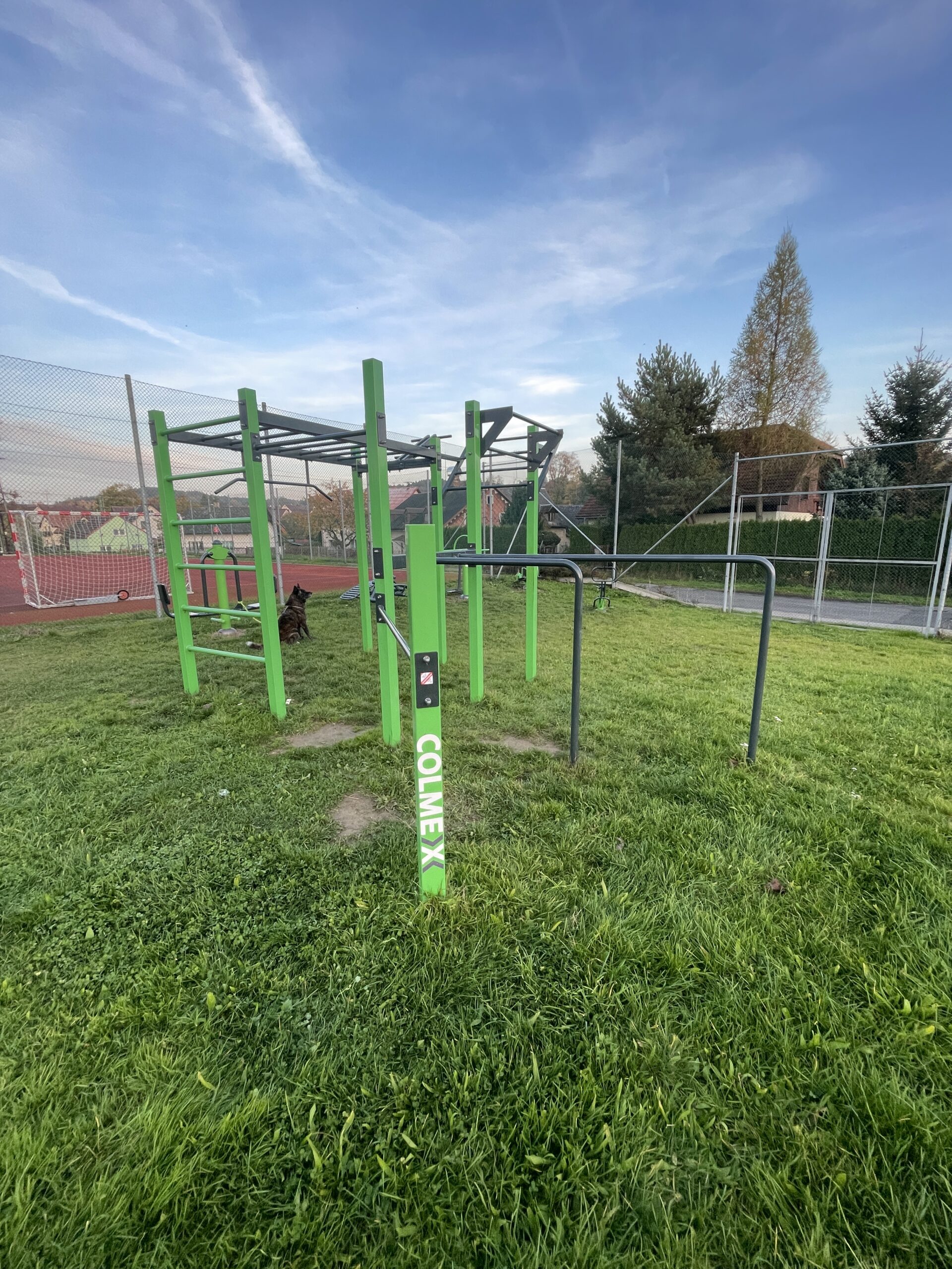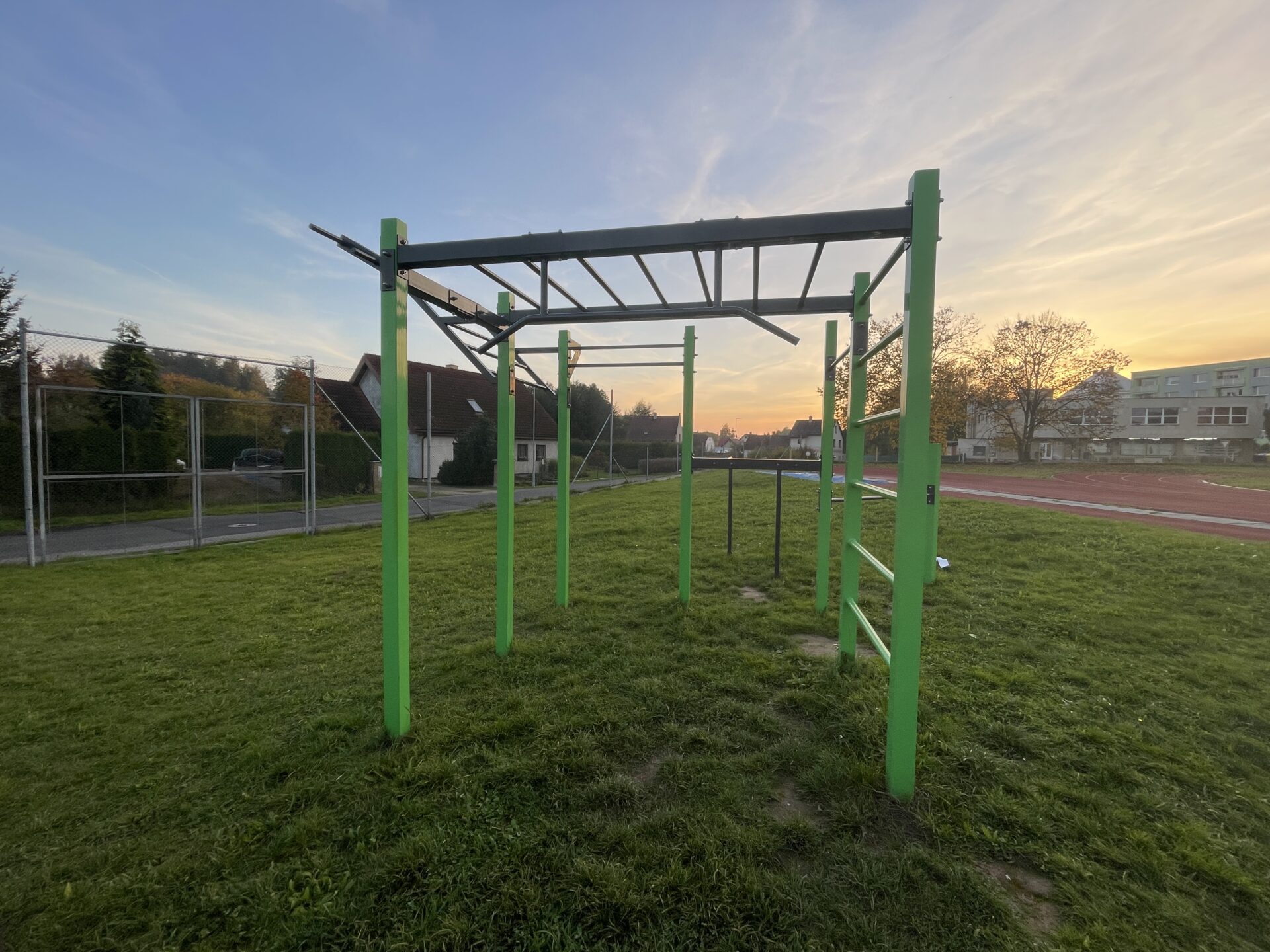 Jak v roce 2020, tak i 2022 jsme rozšiřovali hřiště o další venkovní fitness stroje. Poslední rozšíření proběhlo na jaře roku 2025 a přibyl veslovací stroj.