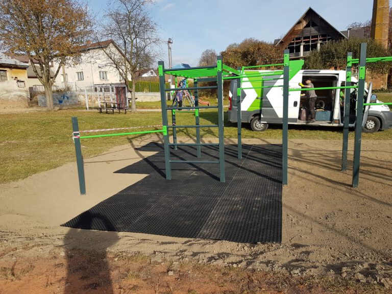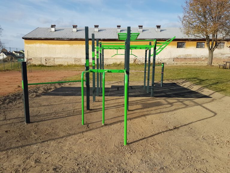 Workoutové hřiště se sestavou, která perfektně snoubí všechny prvky. Workoutové hřiště se nachází poblíž Sboru dobrovolných hasičů v obci Pohled.