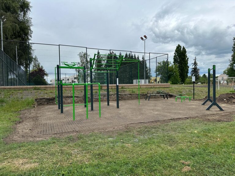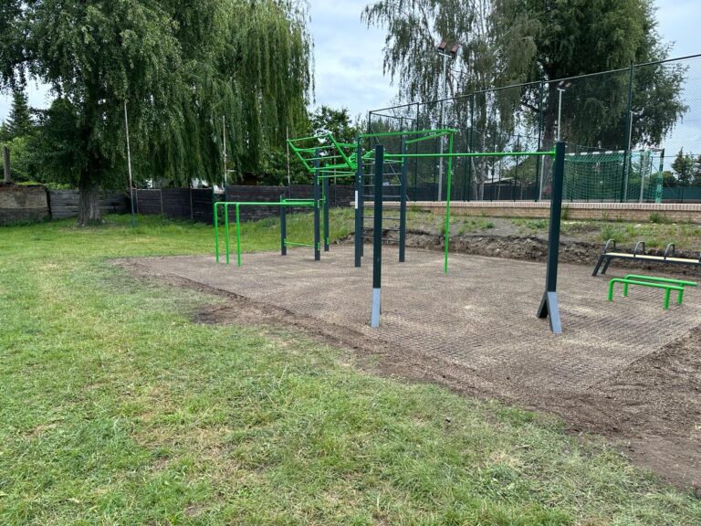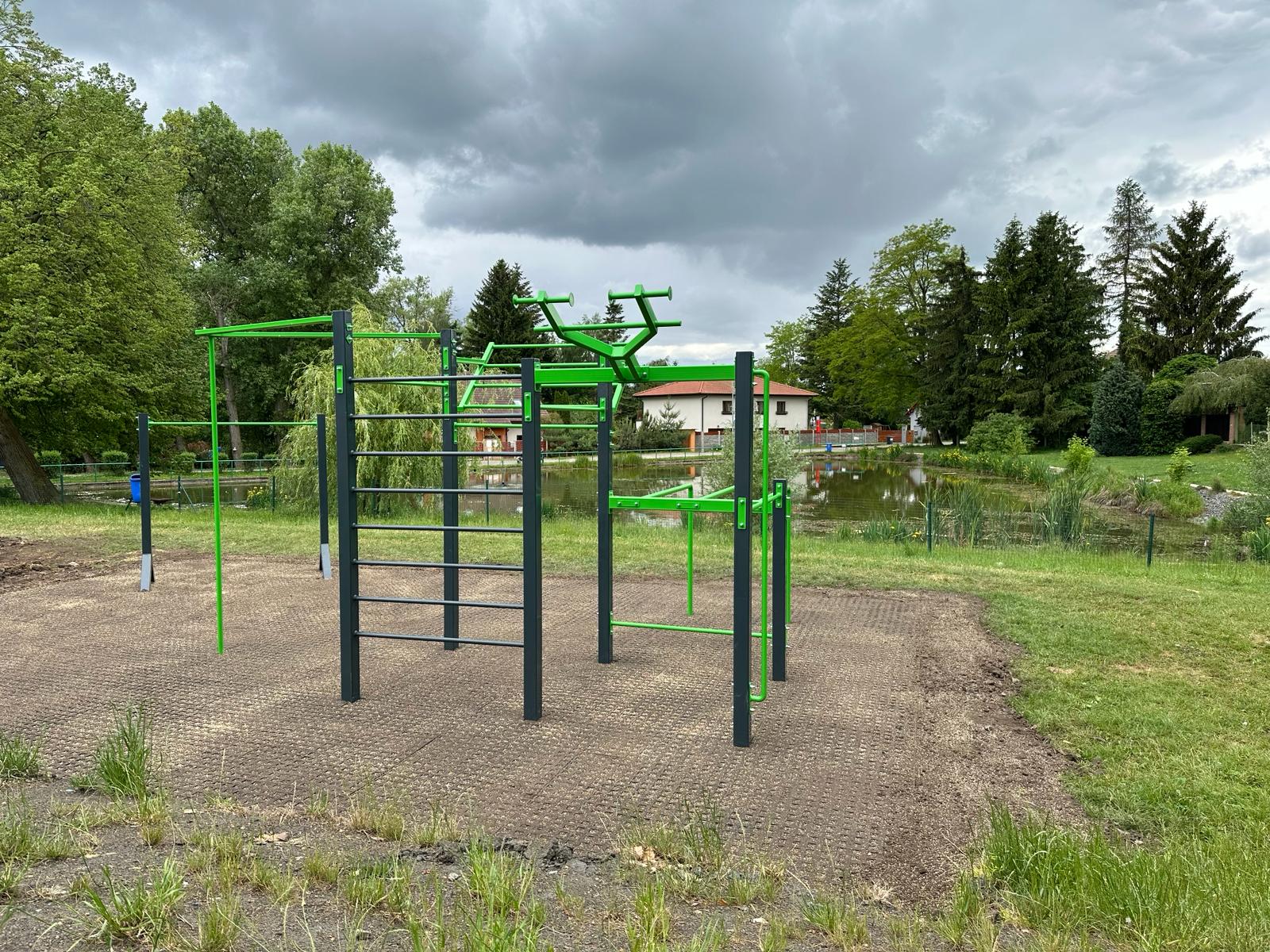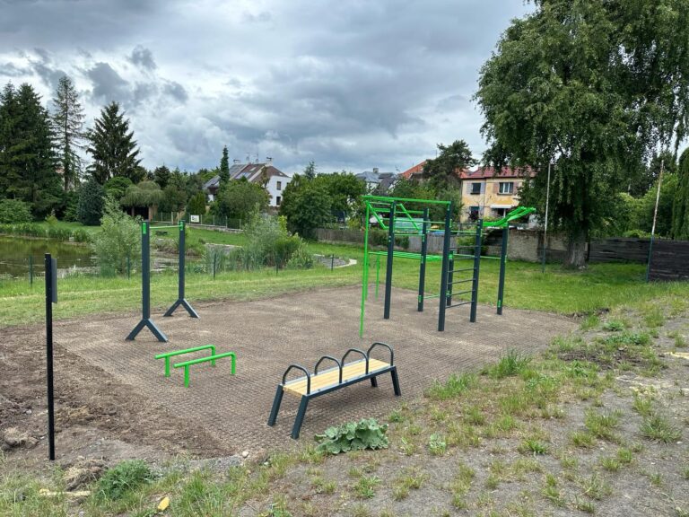 Street workout A-typu nabízí prostor pro trénink s vlastní vahou těla v Přezleticích u rybníku v ulici Cukrovarská.