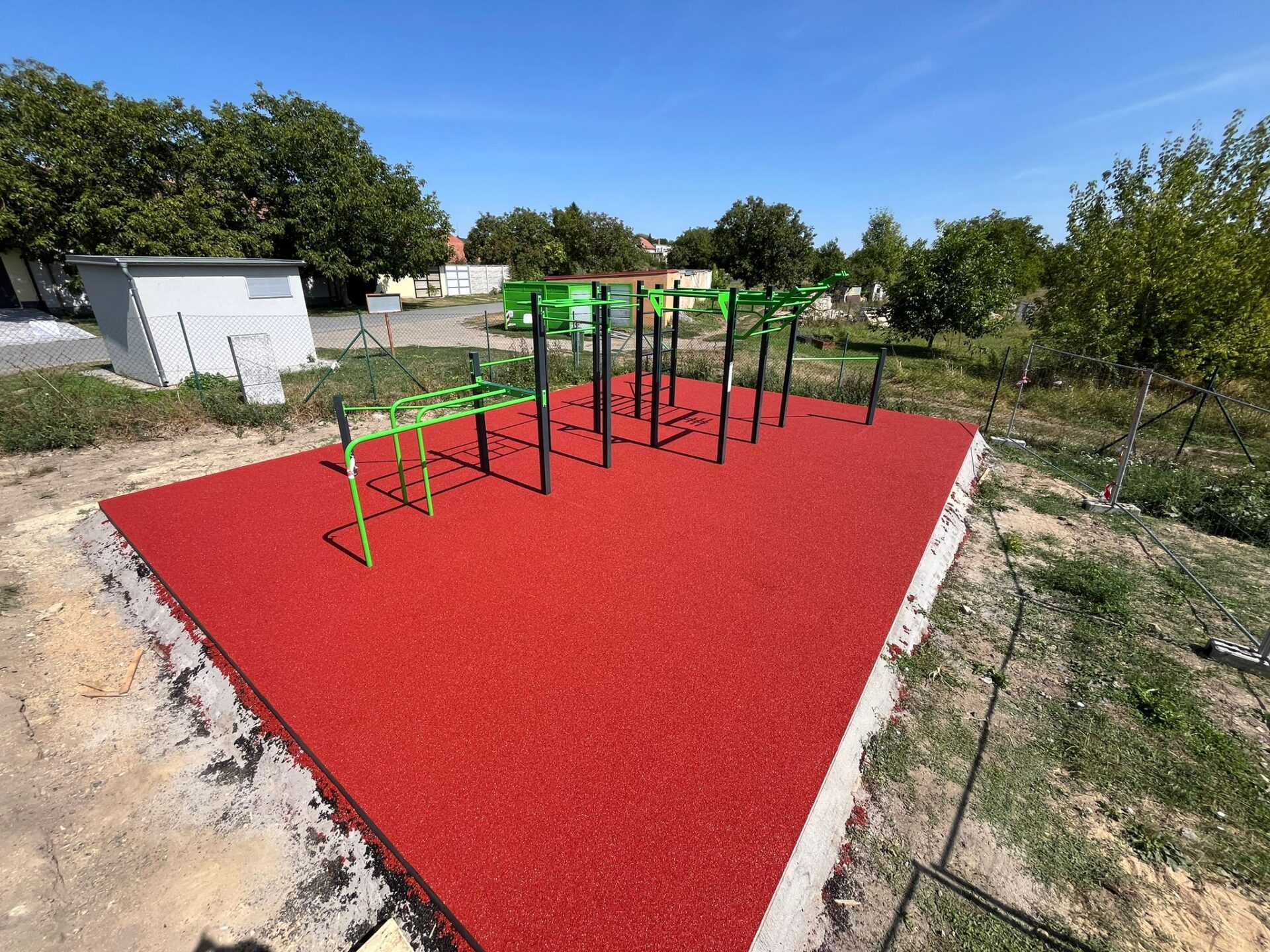 V Újezdu u Brna si můžete u místního fotbalového hřiště zacvičit na workoutové sestavě určené pro kompletní trénink celého těla.