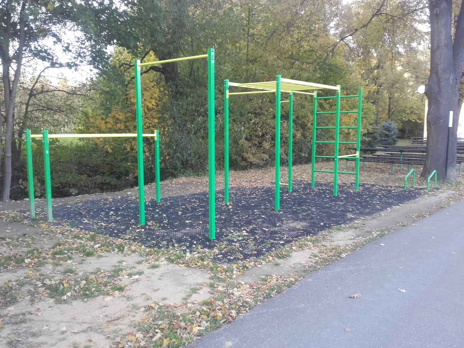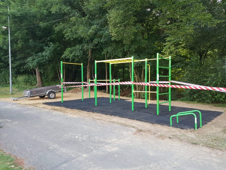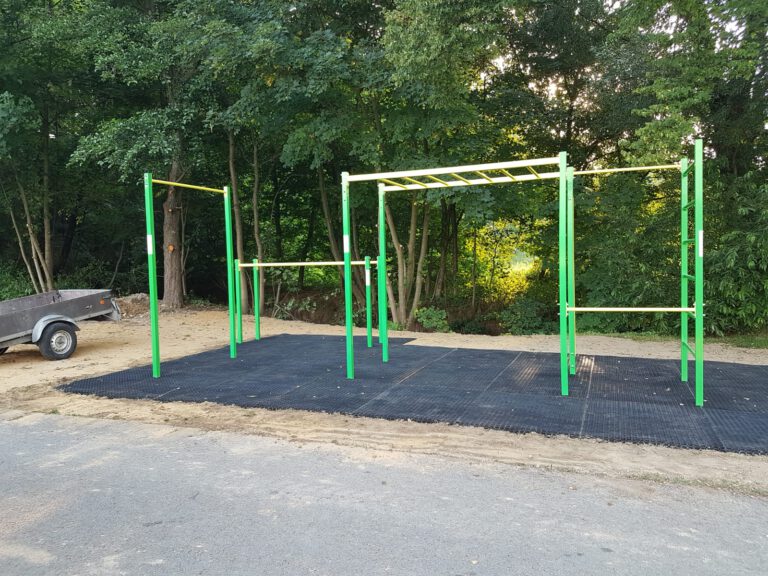 Tzv. A typové sestavy jsou velmi oblíbenou variantou našich zákazníků. Důvodem je možnost přizpůsobit podobu sestavy na míru požadavkům budoucích cvičenců. Tuto sestavu s bradly a stálky, můžete najít v obci Vřesina, v ulici Sportovní.