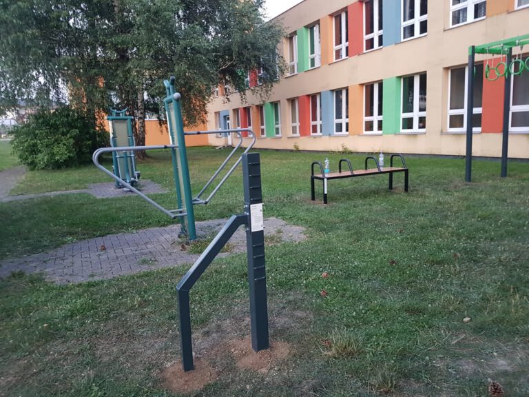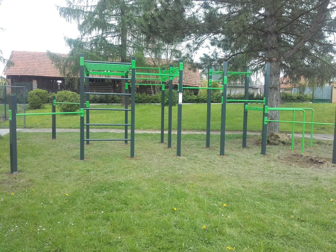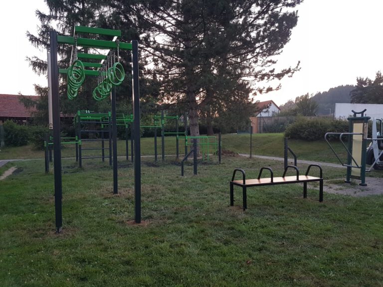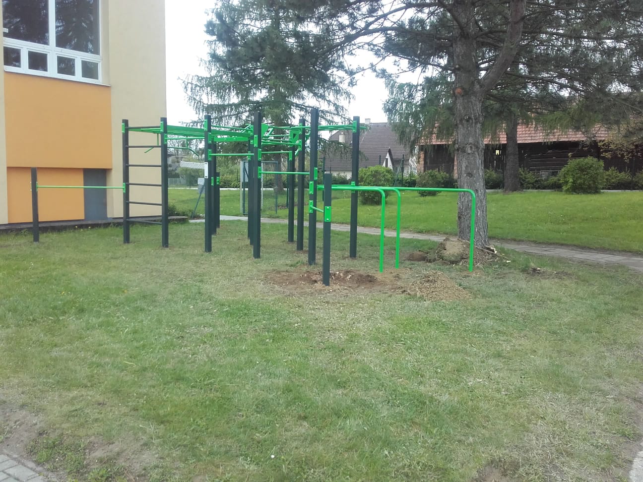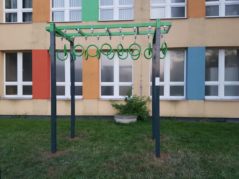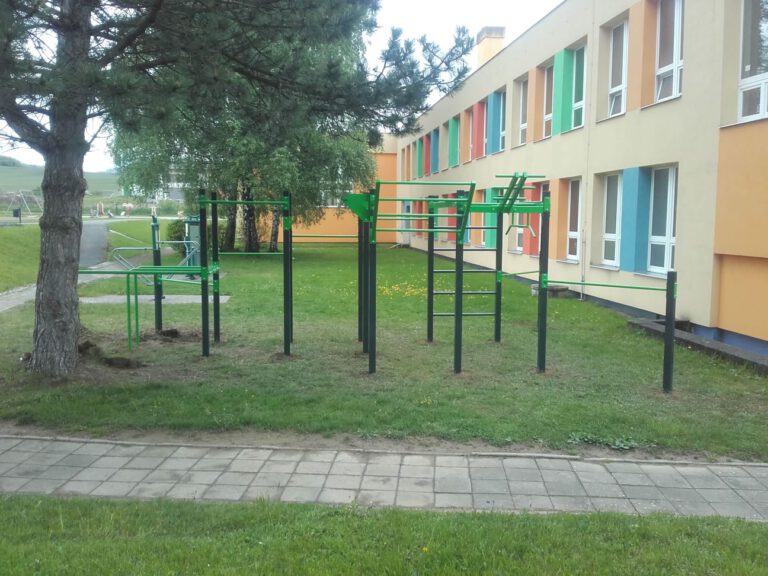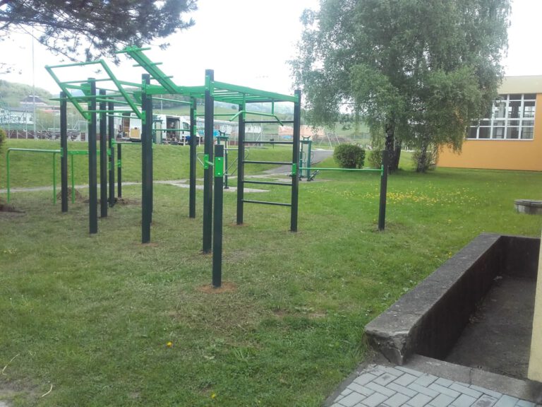 Workoutové hřiště v Zubří se sestavou, která perfektně snoubí všechny prvky workoutového cvičení. Zacvičit si zde můžete i na zavěšených kruzích.