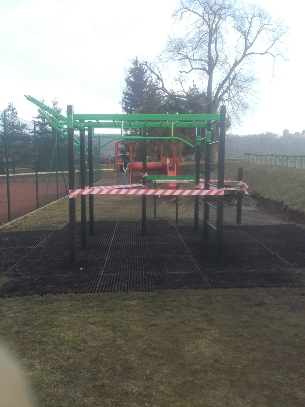Streetworkout se sestavou, která perfektně snoubí všechny prvky workoutového cvičení se nachází u tenisových kurtů.