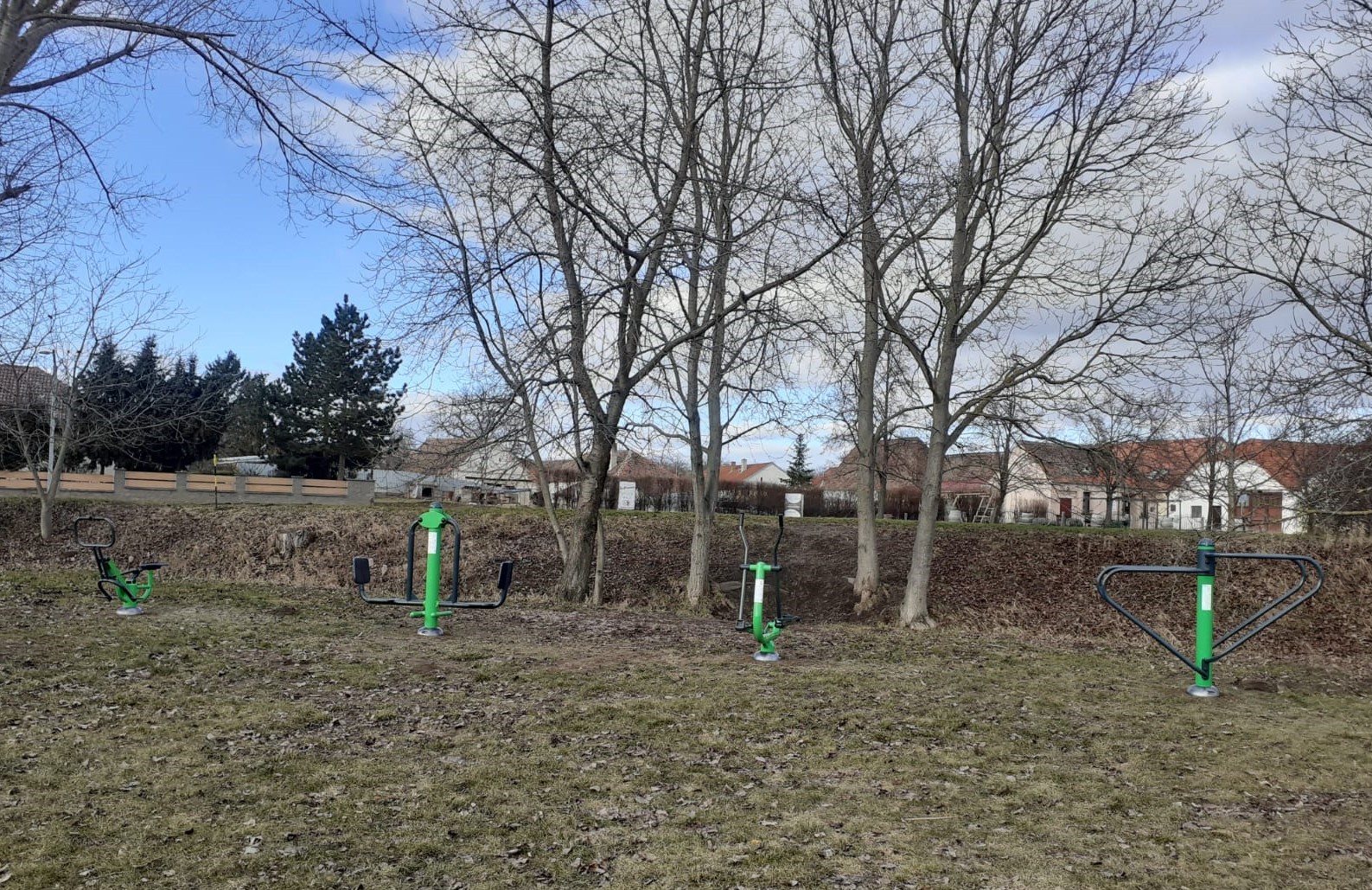 Venkovní fitness stroje, které se nacházejí poblíž ulice Okružní, slouží pro posilování svalů končetin, ke zlepšování koordinace těla a zvyšování kapacity srdce a plic.