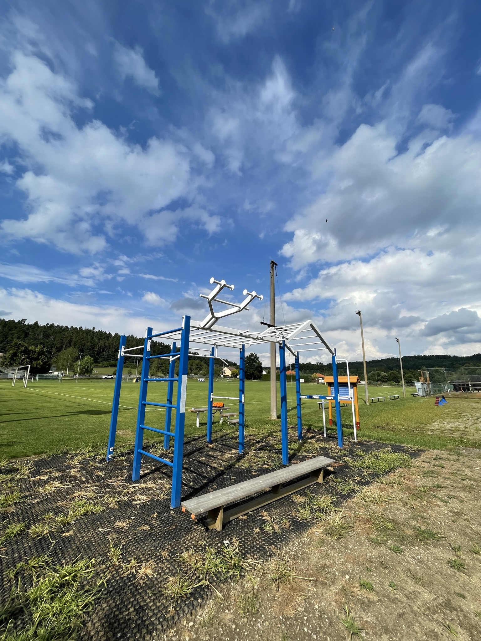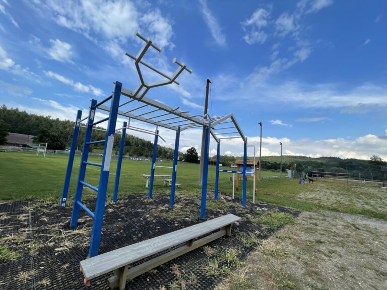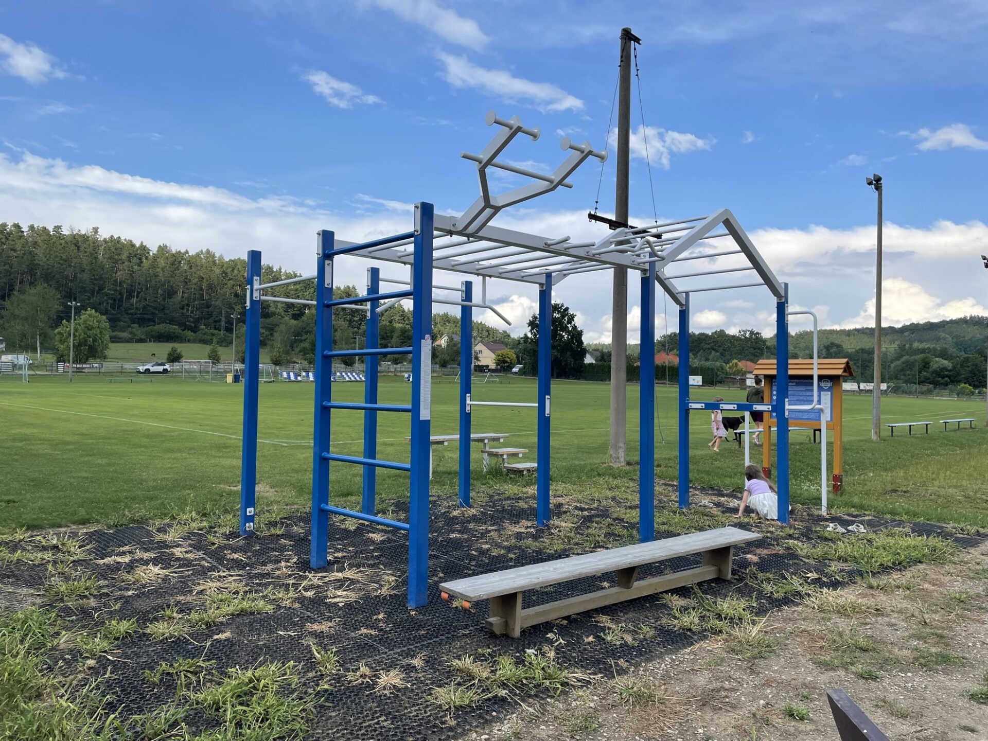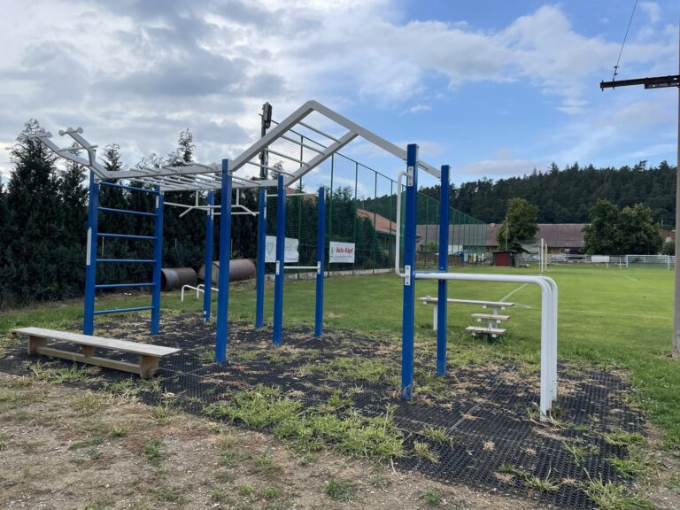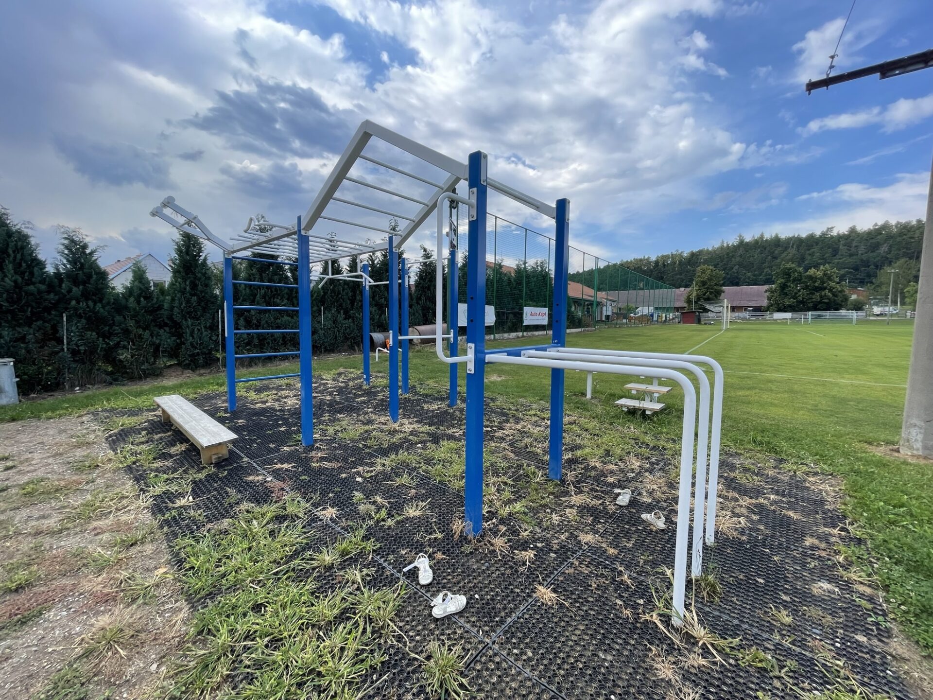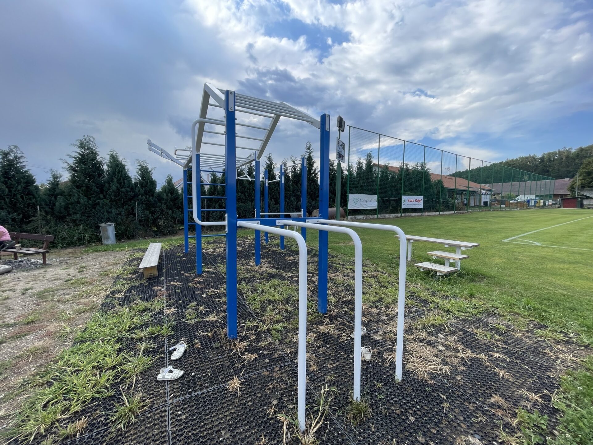 U fotbalového hřiště umístěna A-typová workoutová sestava nabízí komplexní složení prvků, na kterých si zavičí opravdu každý. Extra přidanou hodnotou jsou stálky, na kterých můžete cvičit například stojka či kliky. V areálu je umístěno dětské hřiště a také ping pong fotbalové stoly.