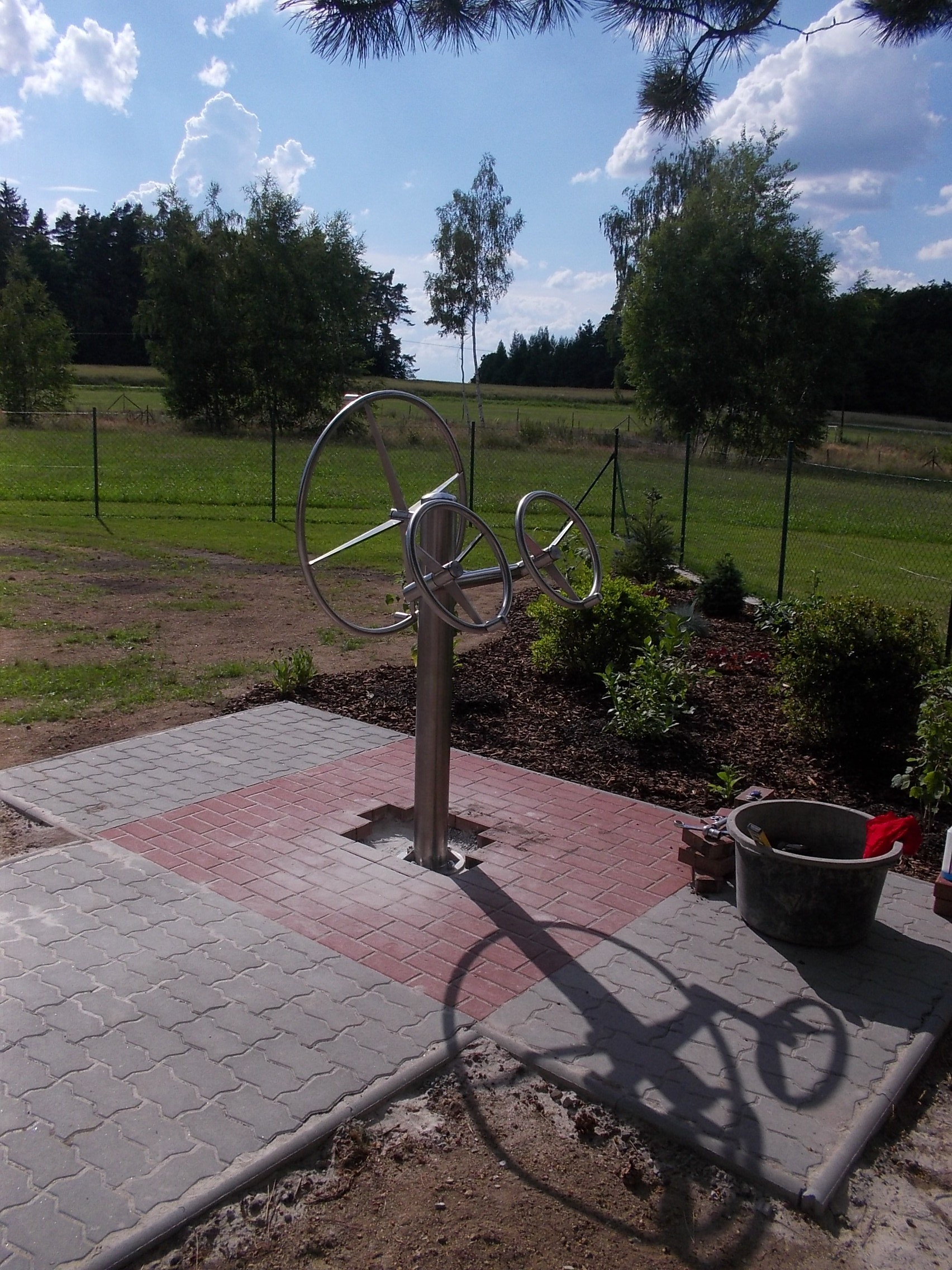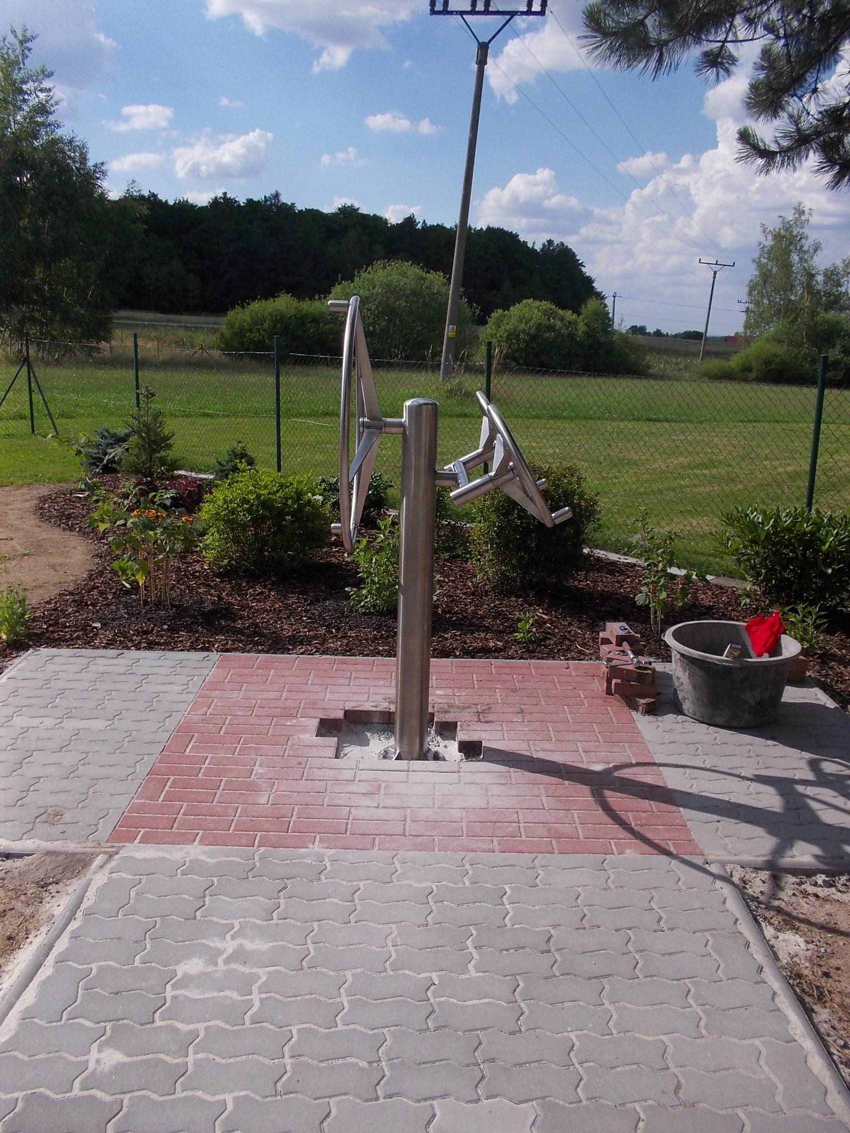 Venkovní fitness prvek na procvičování kloubů a ramen je umístěn v areálu “Domova pro seniory”.