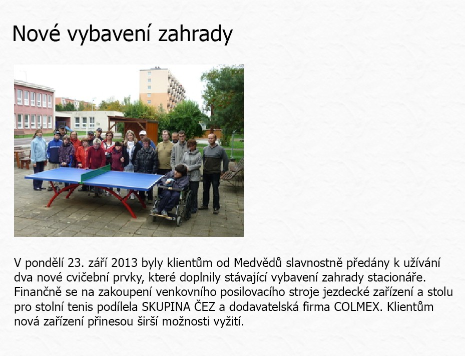 Denní rehabilitační stacionář pro tělesně, mentálně a smyslově postižené děti a mládež instaloval v prostorách zahrady surfovací zařízení.