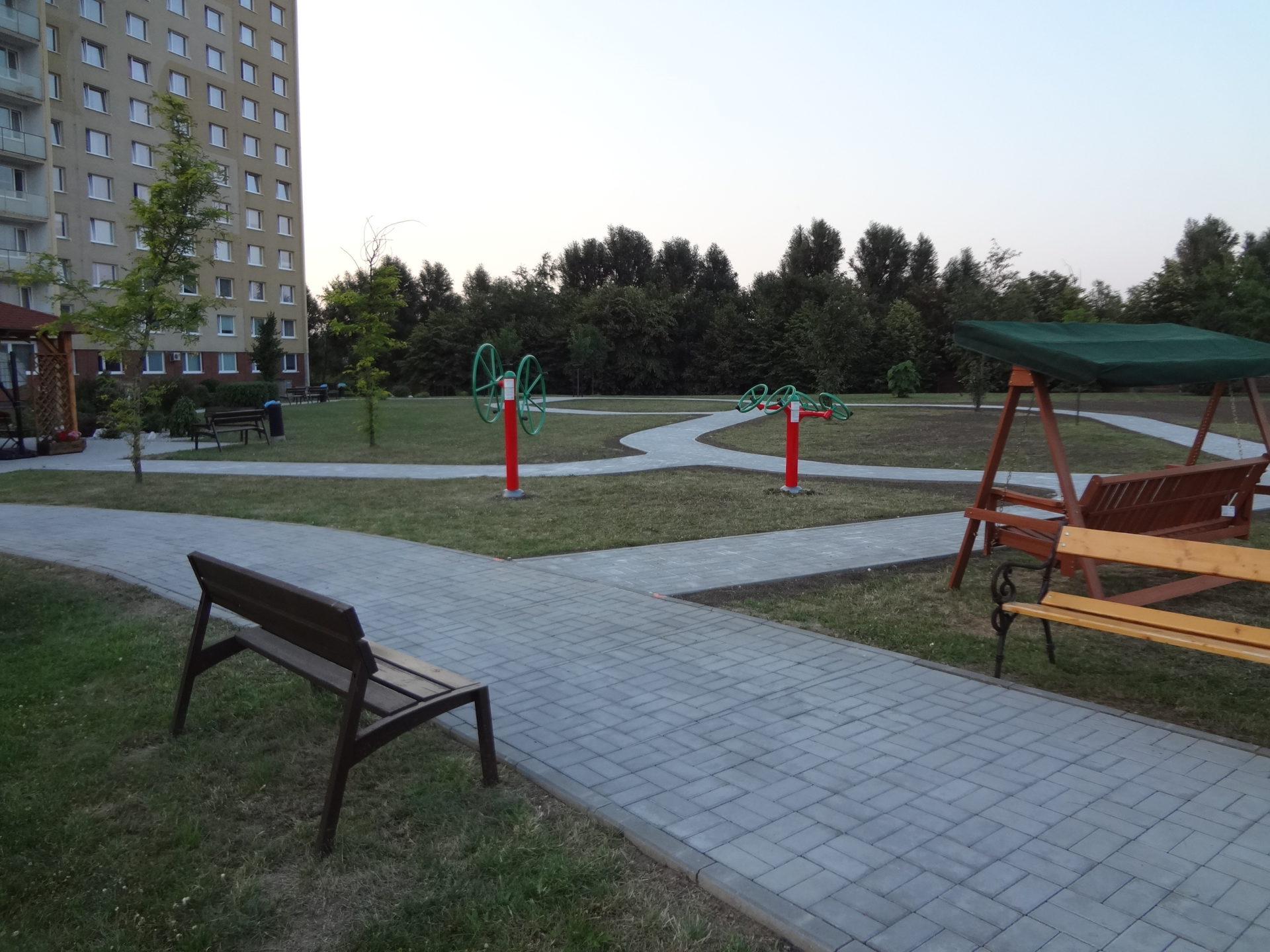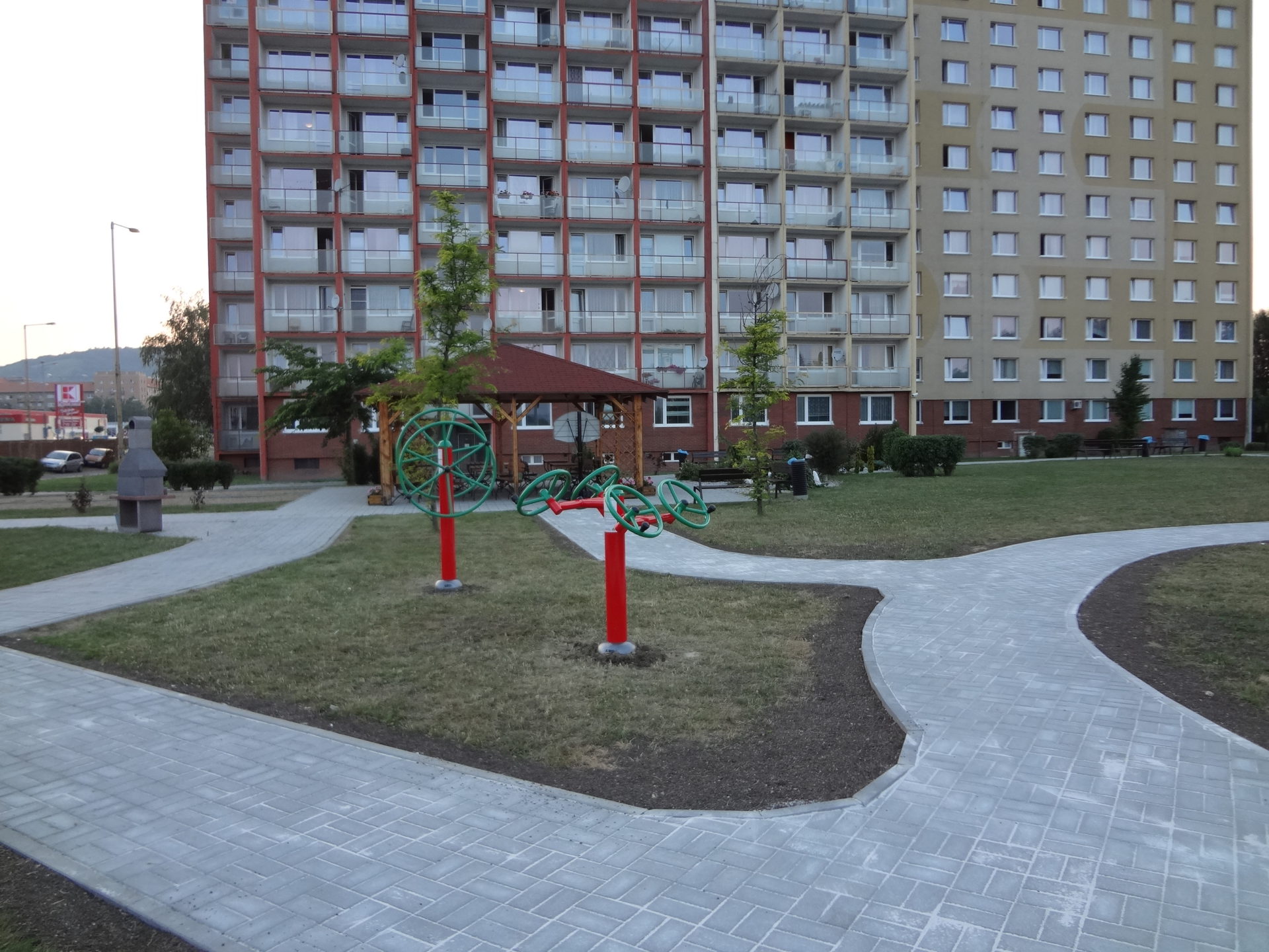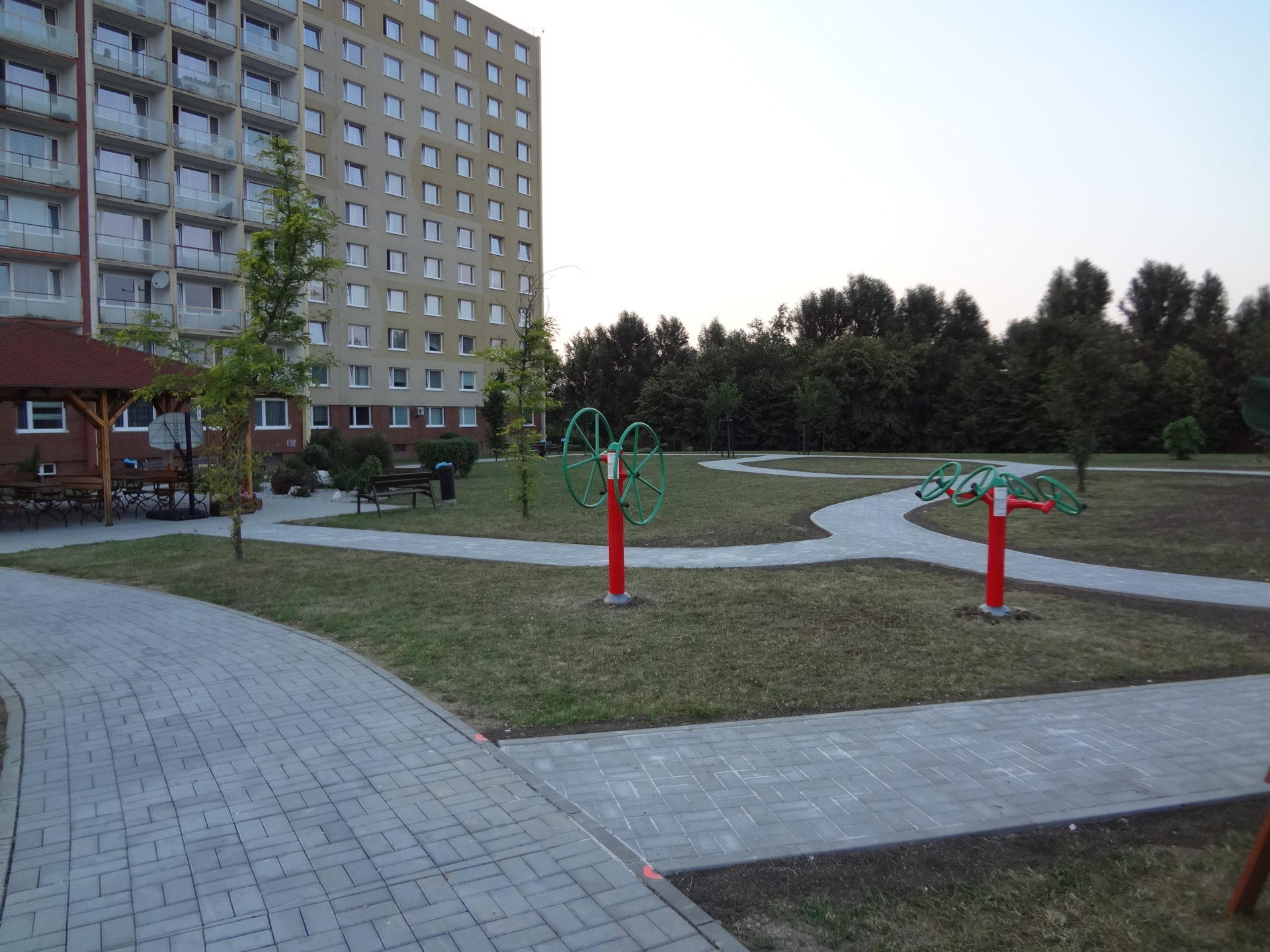Umístění sestavy do areálu domova pro seniory pro zkvalitnění a zpříjemnění pobytu venku tím, že umožní seniorům protáhnout tělo, zlepšit kondici a fyzičku.